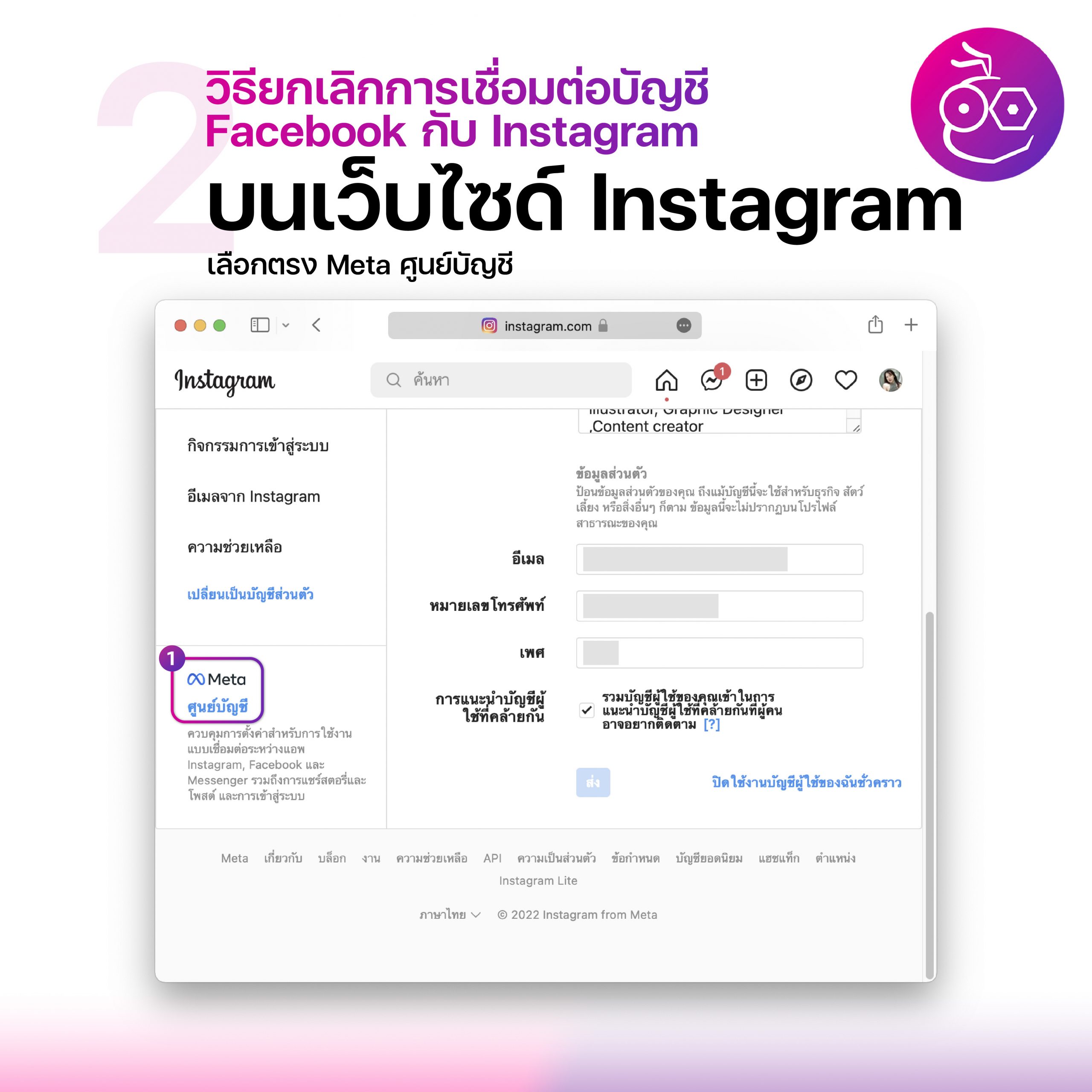 นี่ก็เป็นขั้นตอนยกเลิกการเชื่อมต่อบัญชี Facebook กับ Instagram อัปเดตปี 2022 สามารถทำตามได้เลย
