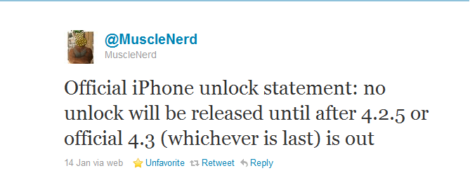 เหตุการณ์ผ่านมาจนถึง มีนาคม 2554 ก่อนที่ iOS 4.3 จะถูกปล่อยออกมาไม่นาน @MuscleNerd ได้ทวีตบอกว่า สามารถทำการ unlock iPhone 4 ได้แล้วจนถึงเฟิร์มแวร์ 4.3b3 และคาดว่าจะปล่อย หลังจาก iOS 4.3 ตัวเต็มได้ถูกปล่อยออกมาให้ใช้กัน เพียงแต่ว่าเมื่อ iOS 4.3 ถูกปล่อยมาแล้วกลับไม่มีข่าวจากทาง Dev Team เลย สาเหตุนั้นเป็นอย่างนี้ครับ