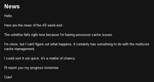 หลาย ๆ ท่านคงจะรอคอยข่าวสำหรับ iPad 2/iPhone 4S ว่าจะมีโอกาสได้เหมือน iDevice ที่ใช้ชิป A4 หรือไม่ วันนี้นักพัฒนา Pod2g ผู้คนพบ Untethered Jailbreak สำหรับ iOS 5.0.1 ได้ประกาศออกมาแล้วครับว่า หลังจากได้ทดลองกับ iPhone 4S ไม่สามารถเจลเบรกได้ เพราะชิปประมวลผลแบบ Dual Core นั้นต้องการโค้ดที่แตกต่างออกไป