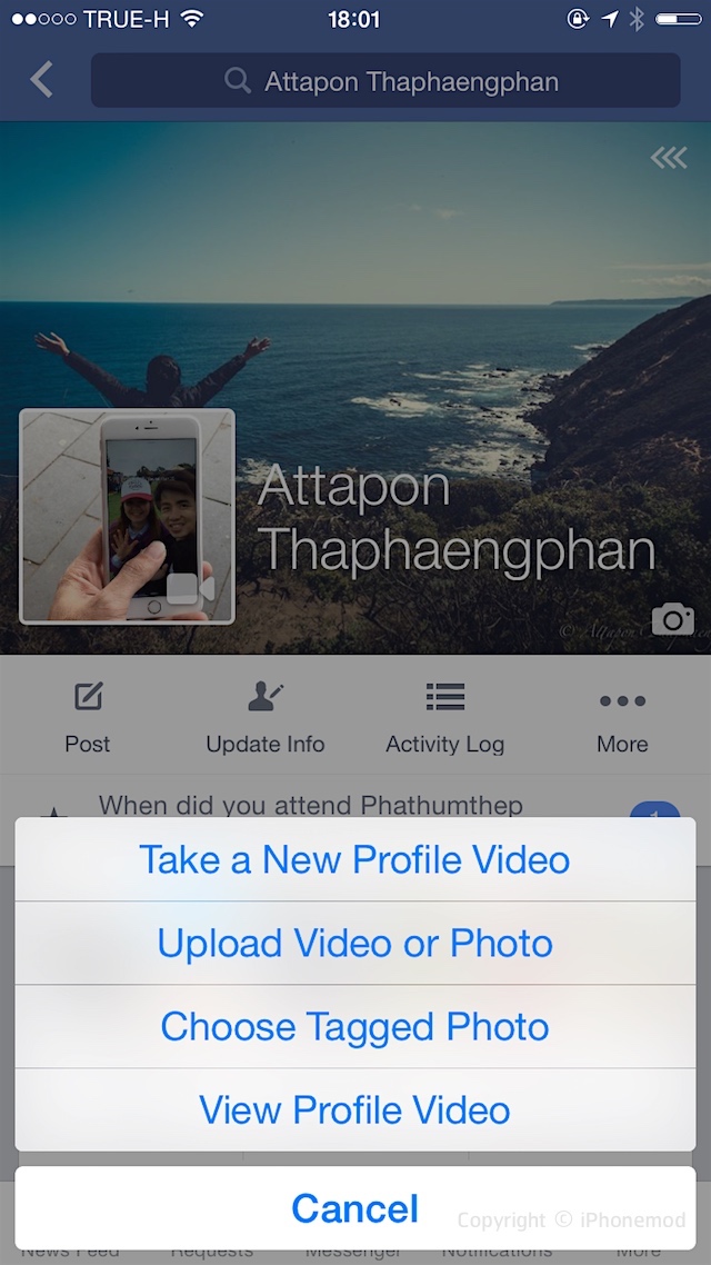 มีข่าวก่อนหน้านี้แจ้ง facebook จะให้ใช้วีดีโอขึ้นเป็นภาพโปรไฟล์ได้แต่ถึง ณ วันนี้(ที่เขียน) ก็ยังไม่ปล่อยออกมาทางการสักที แต่ในทางเทคนิคก็สามารถทำได้แต่สิ่งที่ต้องมีคือ iPhone, iPad ที่ผ่านการเจลเบรคแล้ว