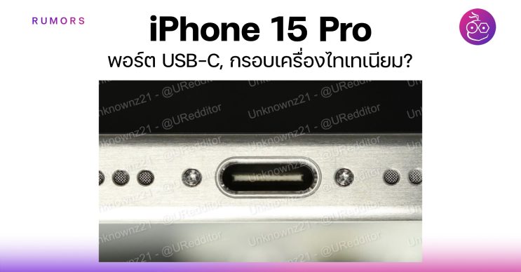 Unknownz21 โพสต์ภาพใน Twitter เผยให้เห็นพอร์ต USB-C คาดว่าเป็นของ iPhone 15 Pro และพื้นผิวของกรอบเครื่องนั้นดูทรงแล้วคล้ายกับวัสดุไทเทเนียม (เหมือน Apple Watch Ultra) และนอกจากนั้นขอบเครื่องดูมีความโค้งมนด้วย!