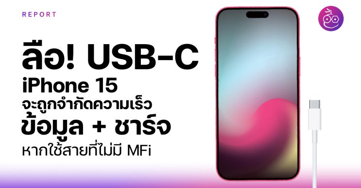 ลือ! USB-C ของ iPhone 15 จะจำกัดความเร็วการโอนถ่ายข้อมูล และความเร็วการชาร์จ หากใช้สายที่ไม่มีมาตรฐาน MFi (Made for iPhone)