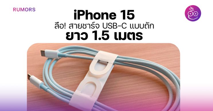 ข่าวลือล่าสุด! สายชาร์จ USB-C แบบถักของ iPhone 15 ที่มีสีสันตามสีตัวเครื่อง อาจมีความยาว 1.5 เมตร และอาจจะแถมมาให้ในกล่องด้วย!
