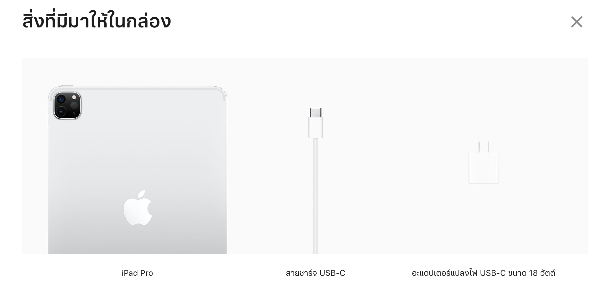 เหตุผลที่ในหน้าเว็บไซต์ยังเป็นหัวชาร์จ 18W อยู่ อาจเป็นเพราะว่ายังมีสินค้า iPad Pro ที่หลงเหลืออยู่ในคลังก่อนที่ทาง Apple จะประกาศเปิดตัวหัวชาร์จแบบ 20W ดังนั้นไม่ใช่ iPad Pro ทุกเครื่องที่จะมาพร้อมหัวชาร์จแบบ 20W นะคะ