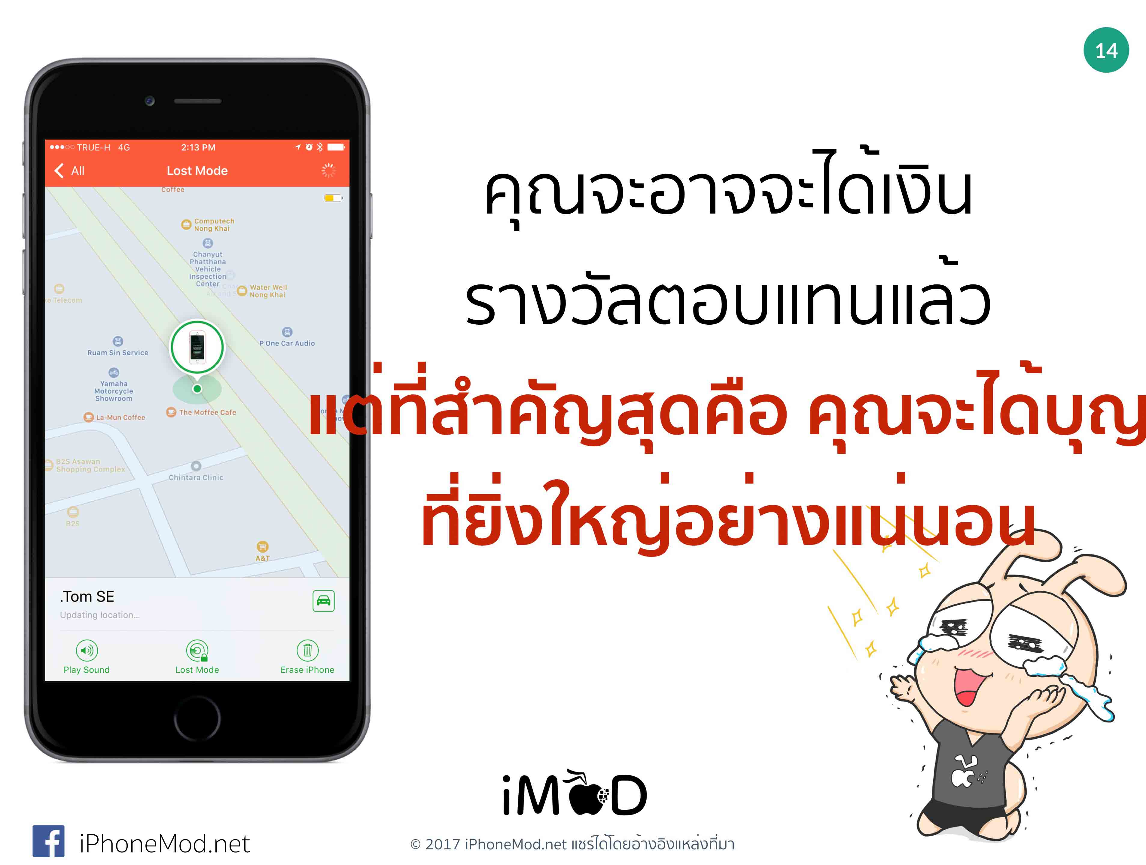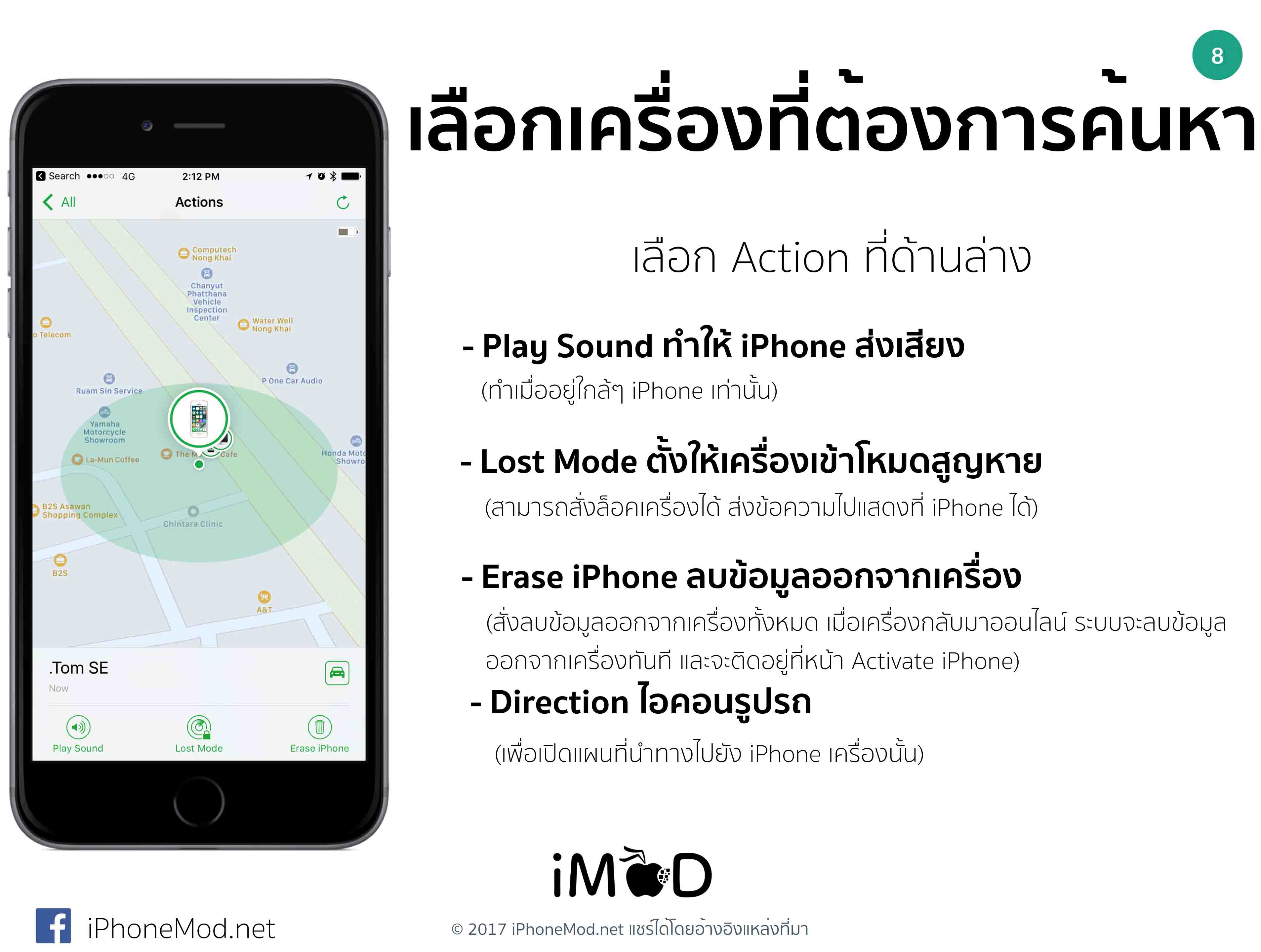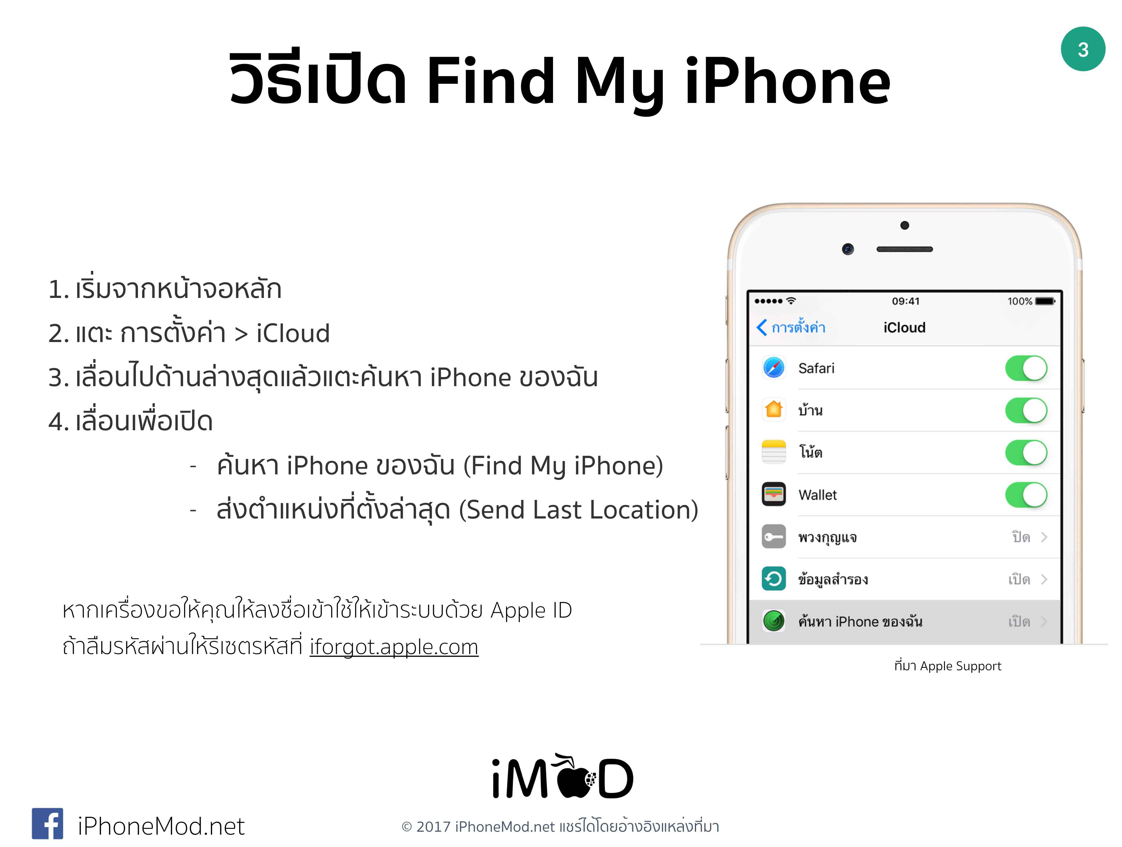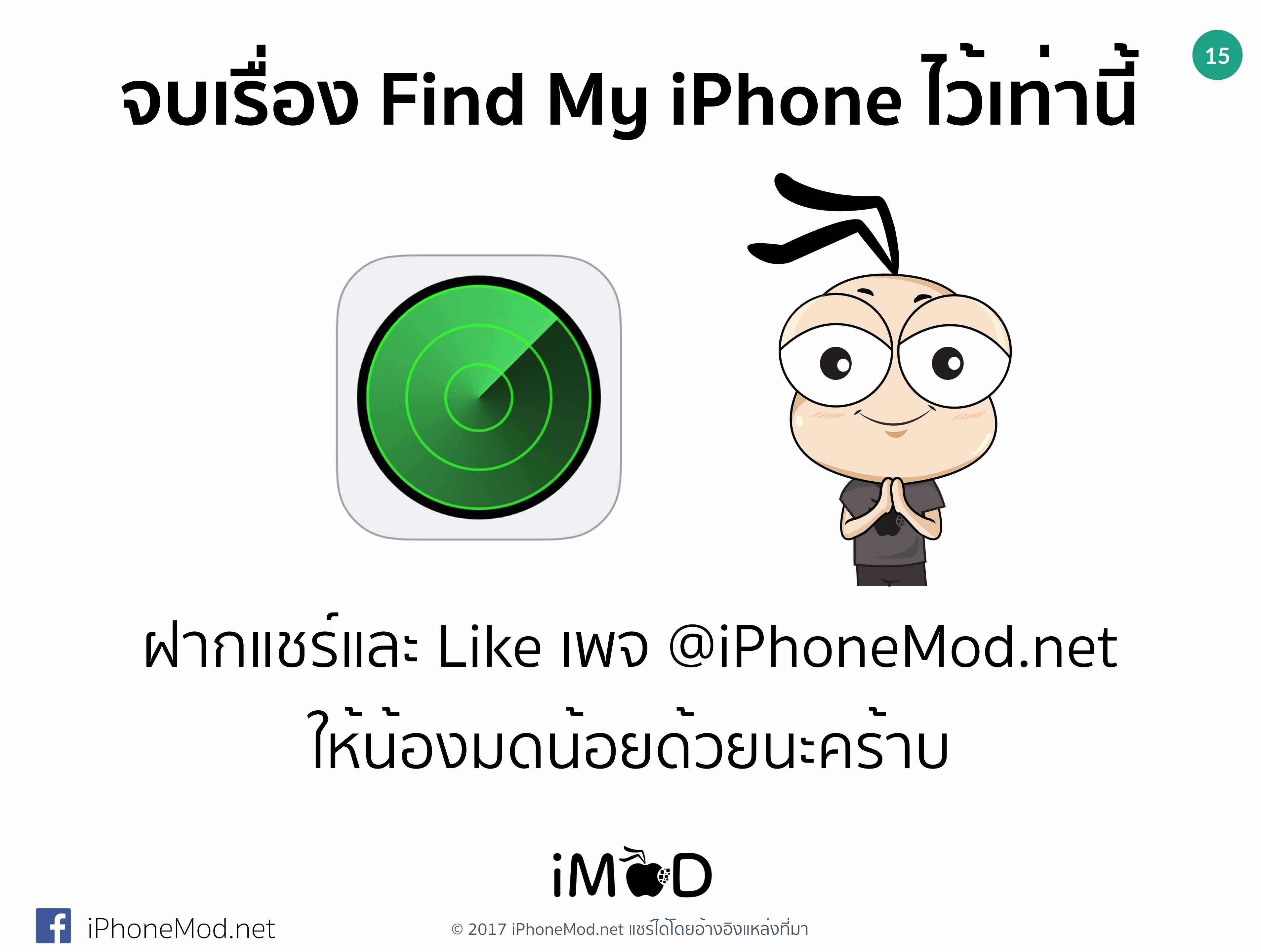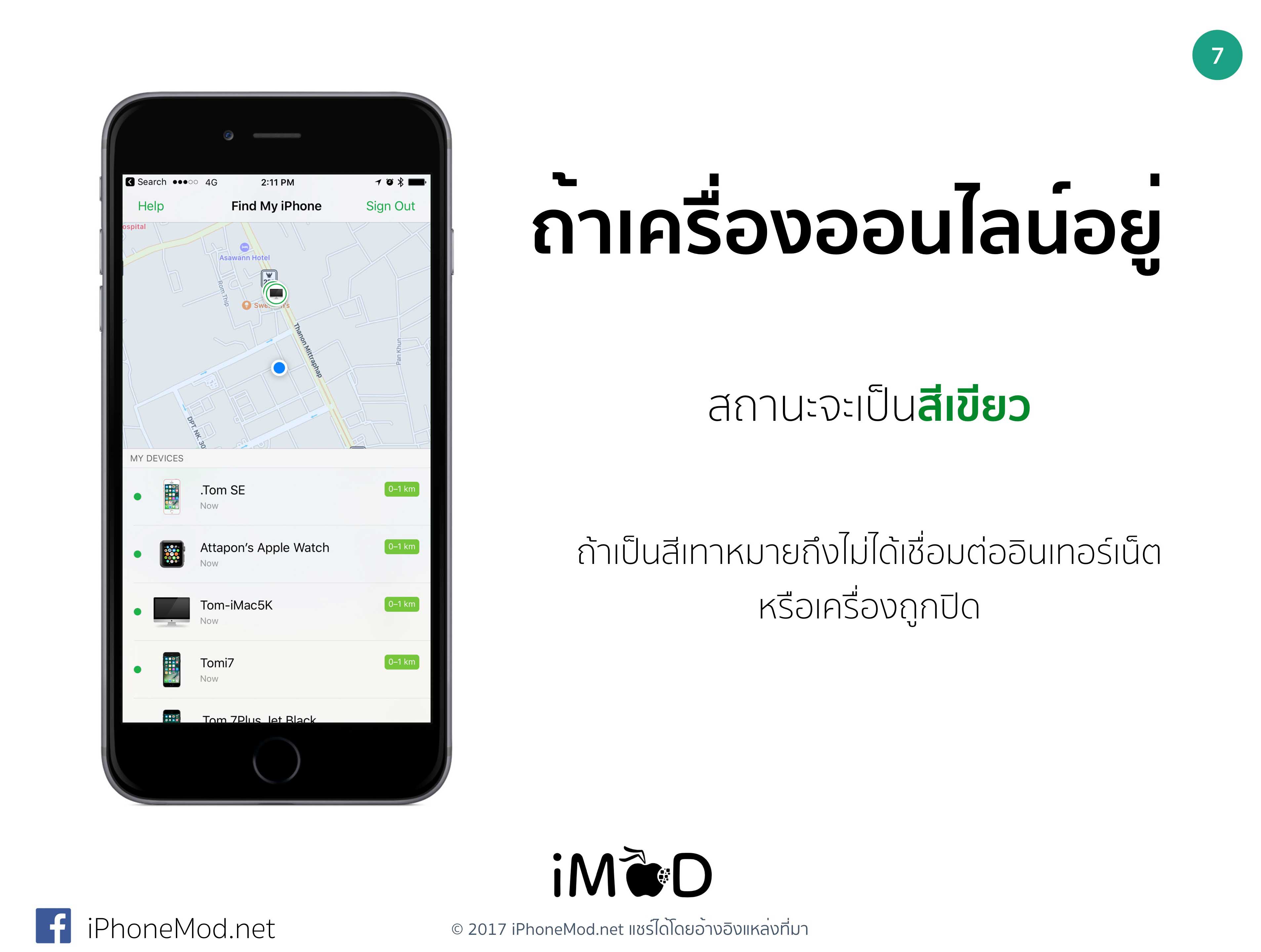 - ถ้าเครื่องปิดอยู่จะค้นหาได้ไหม? ตอบ ไม่ได้ครับ เครื่องต้องเปิดและเชื่อมต่อกับอินเทอร์เน็ต 3G, 4G, WiFi เพื่อที่ iPhone จะส่งพิกัดมาให้