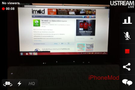 แอพนี้มีชื่อว่า Ustream โดยมีความสามารถคือ สามารถออกอากาศและมีปฏิสัมพันธ์กับผู้ชมของคุณผ่านการแชทและการสำรวจความคิดเห็นต่างๆ โดยสามารถแชร์ช่องของคุณผ่านทาง Facebook หรือ Twitter ได้อีกด้วย ซึ่งแอพนี้ทำออกมาให้ได้ใช้กันแบบฟรีๆ