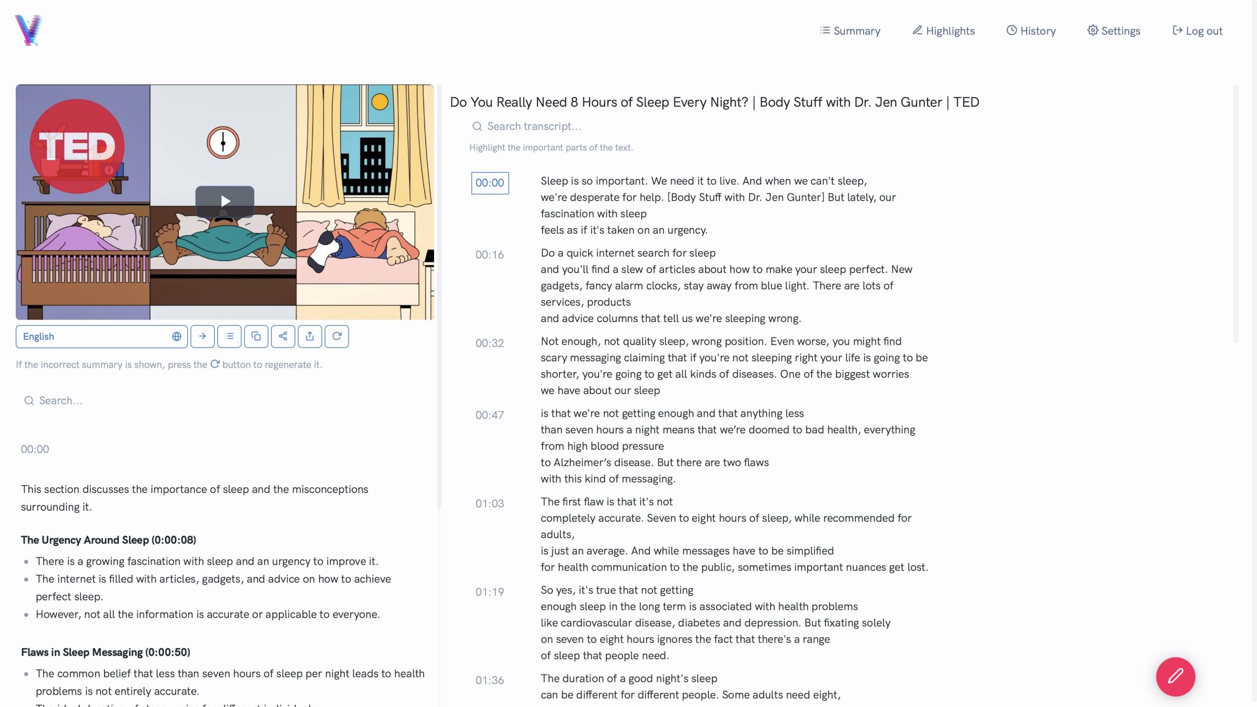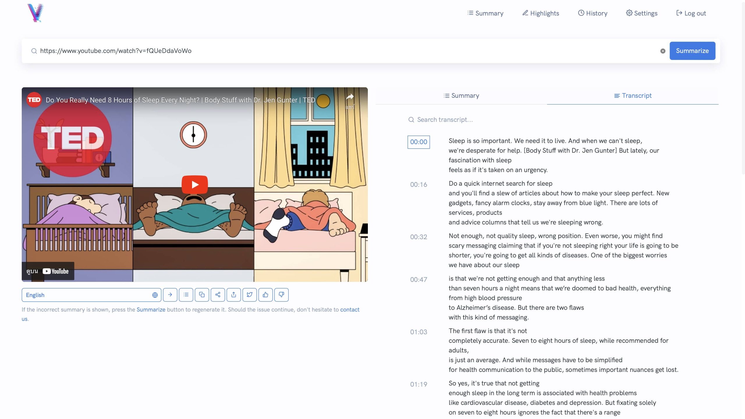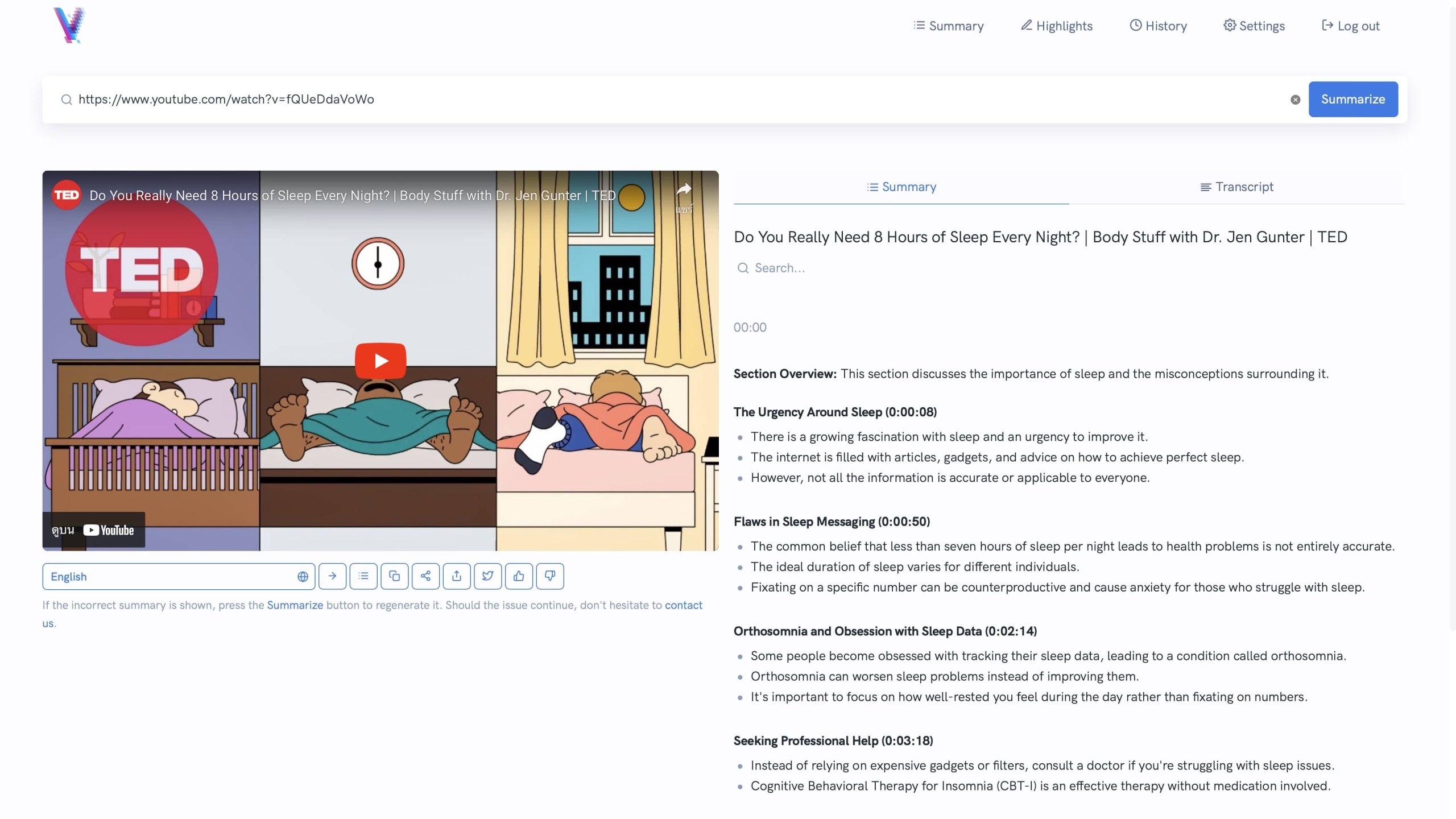 และยังมีโหมด Highlight ที่สามารถดูได้ทั้งสรุป และ Transcript ได้อีกด้วย ซึ่งทำให้สะดวกมากขึ้นถ้าอยากจะดูทั้งสองอย่างไปพร้อมกัน