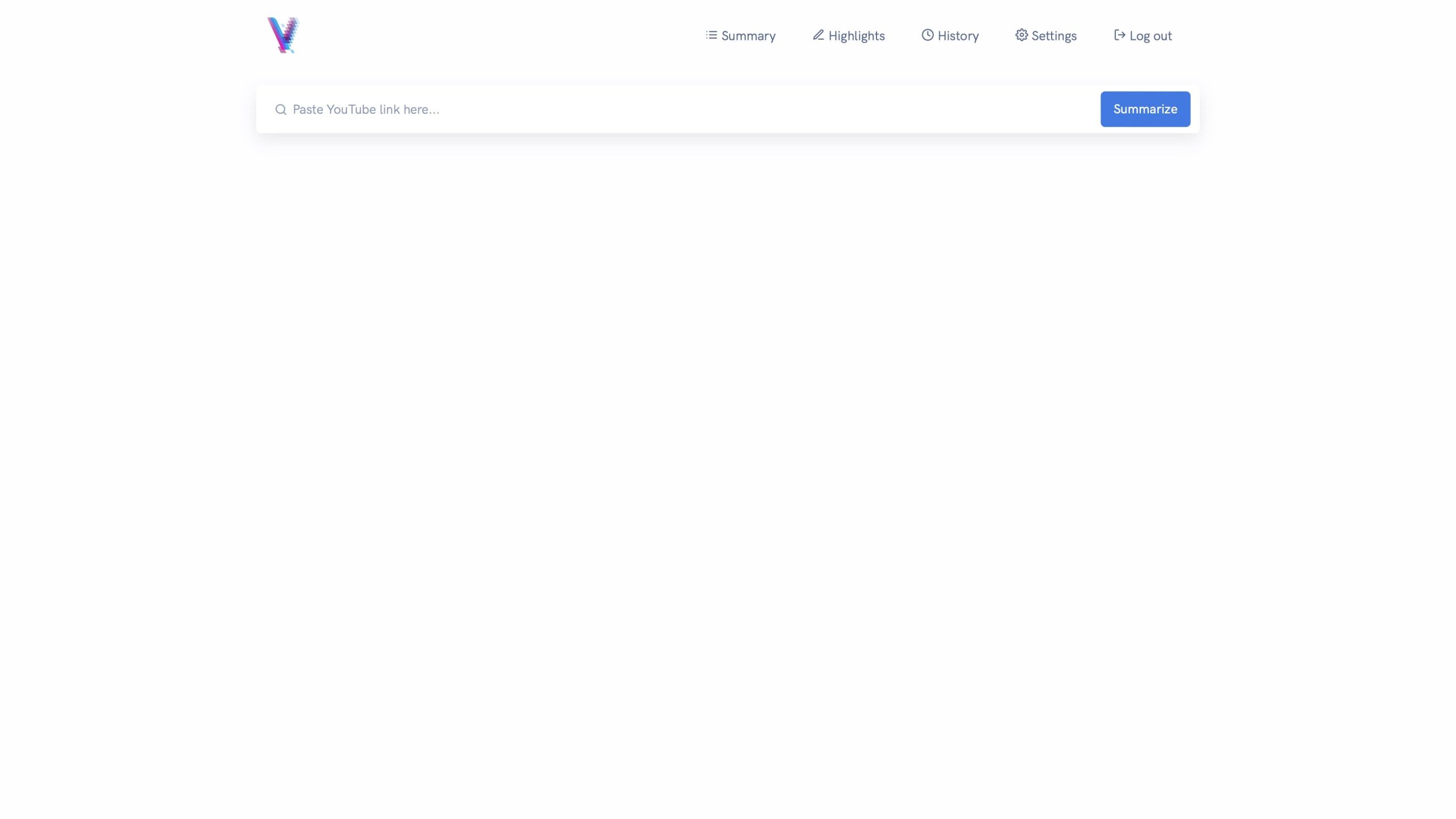 พอเราสมัครเสร็จแล้วจะมาหน้านี้ จะมีช่องว่างเพื่อให้กรอกลิงก์ YouTube ที่เราต้องการให้ AI สรุปออกมาให้
