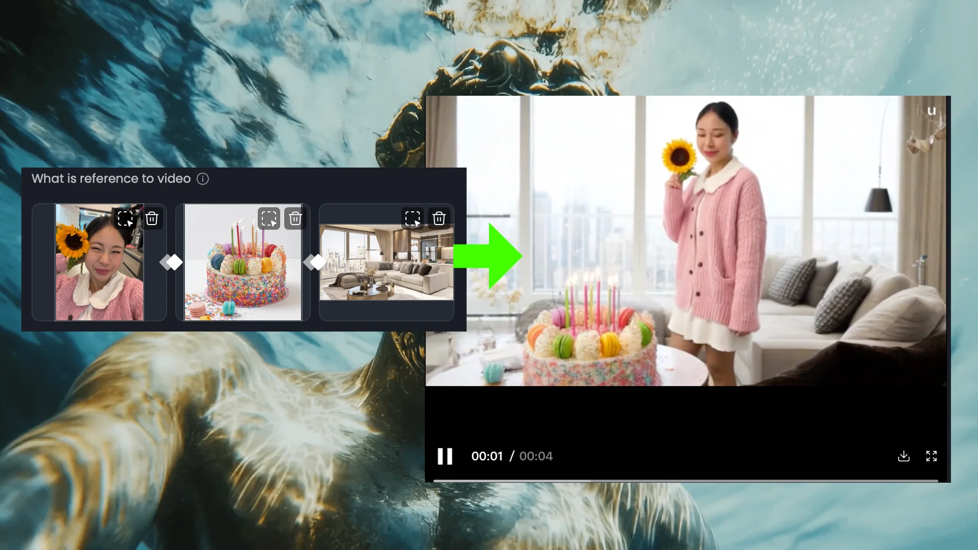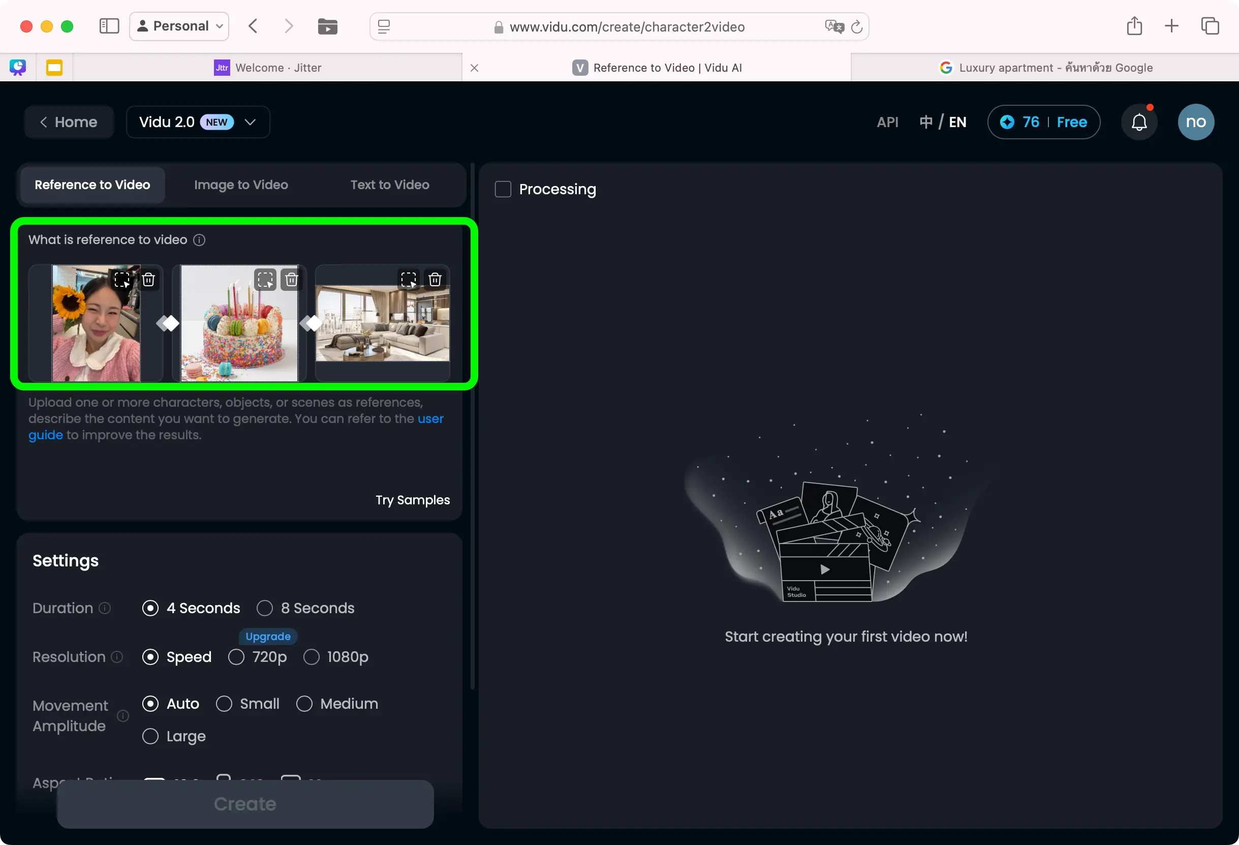 โหมด Reference to Video ใน Vidu ช่วยให้ผู้ใช้สามารถสร้างวิดีโอที่สามารถเลือกตัวละคร วัตถุ และสภาพแวดล้อมต่างๆ ได้ด้วยตัวเอง คุณแค่ต้องหารูป reference มาโยนใส่เท่านั้น