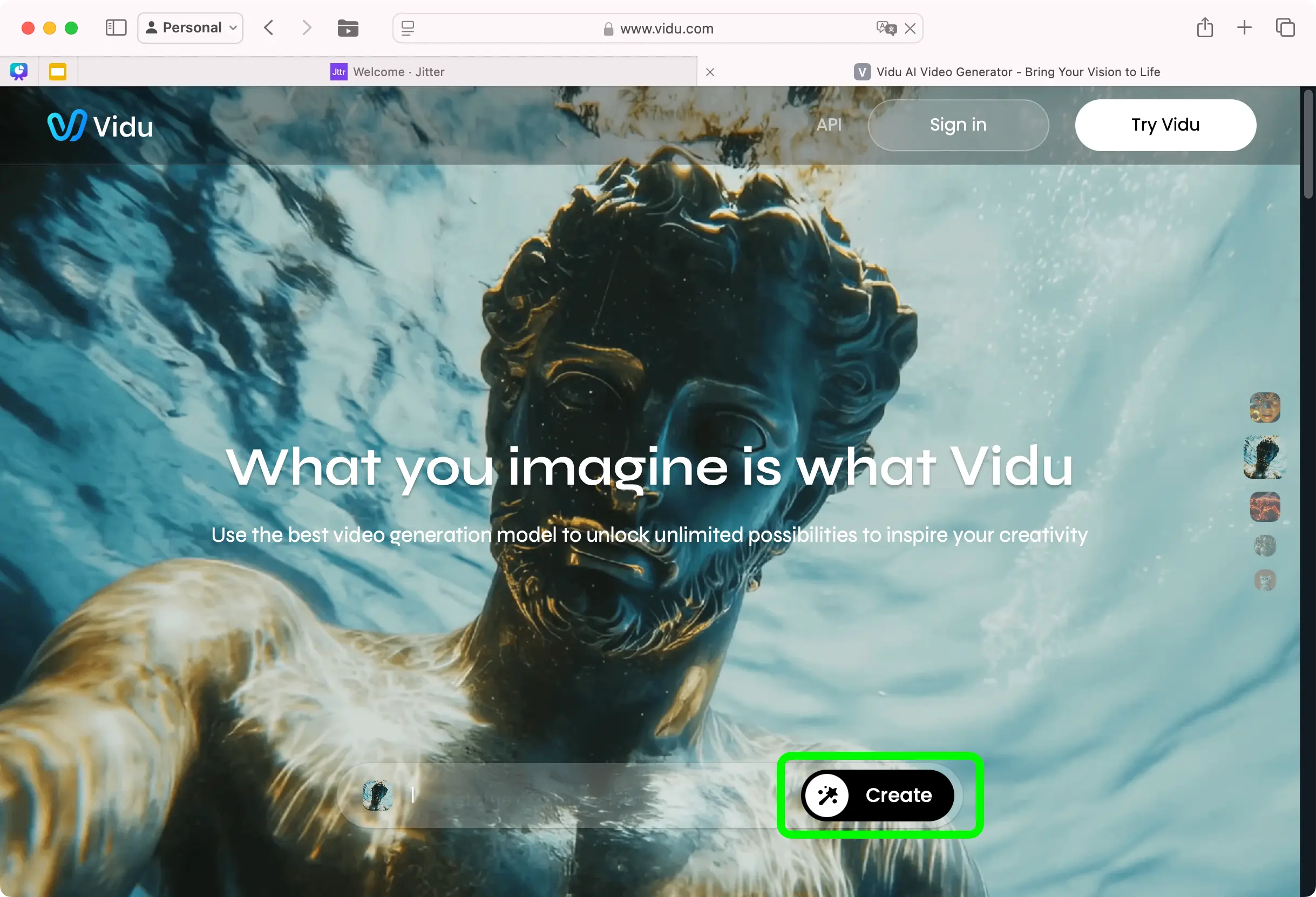 1. เข้าสู่ระบบ Vidu: ไปที่เว็บไซต์ Vidu.com และกดปุ่ม “Create” จากนั้นเข้าสู่ระบบด้วยบัญชีของคุณ