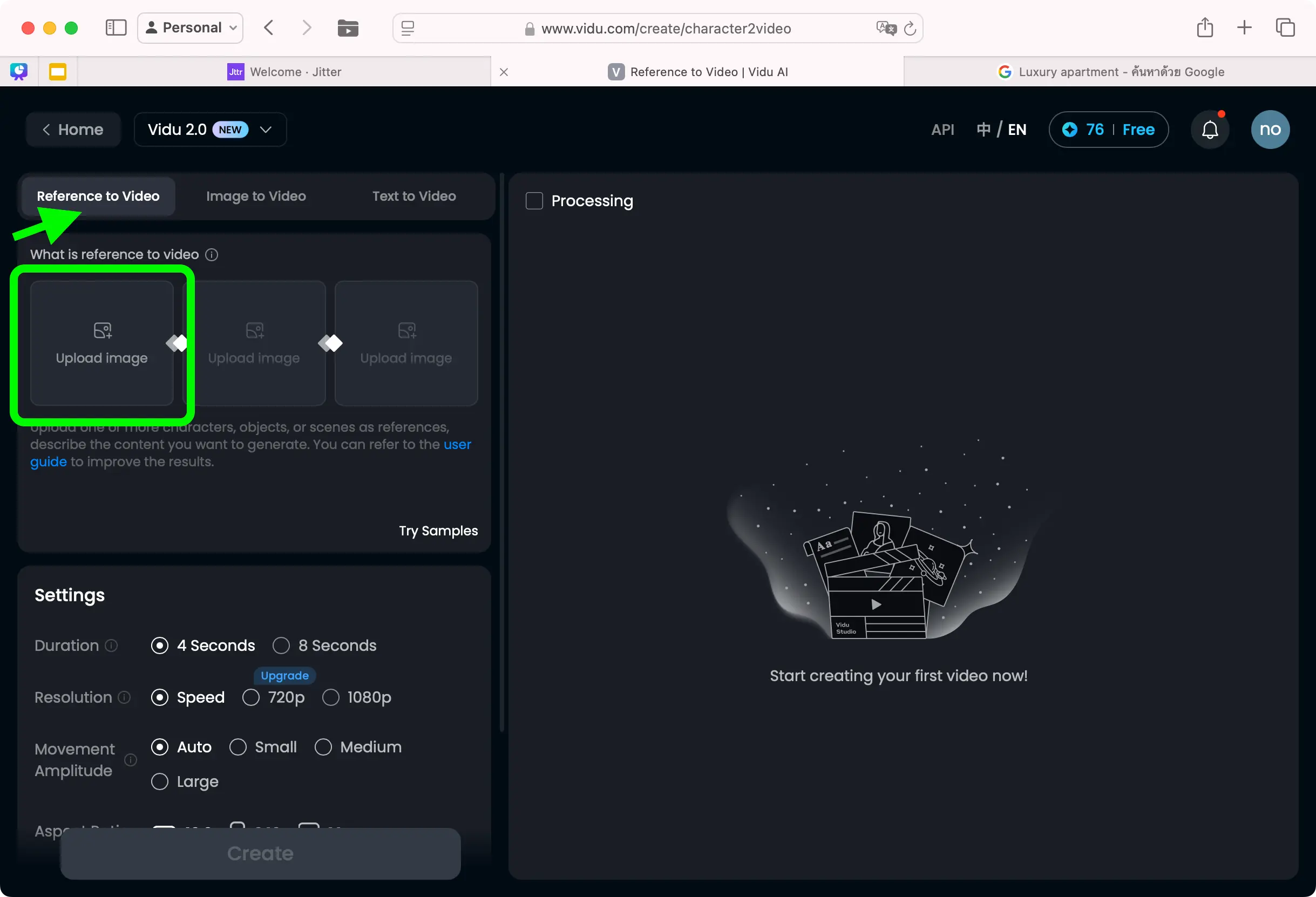 2. เลือกโหมด Reference to Video: ในหน้าเครื่องมือ เลือกตัวเลือก “Reference to Video” ซึ่งในการใช้งานครั้งแรกคุณจะได้เครดิตในการใช้ฟรีทั้งหมด 80 เครดิต