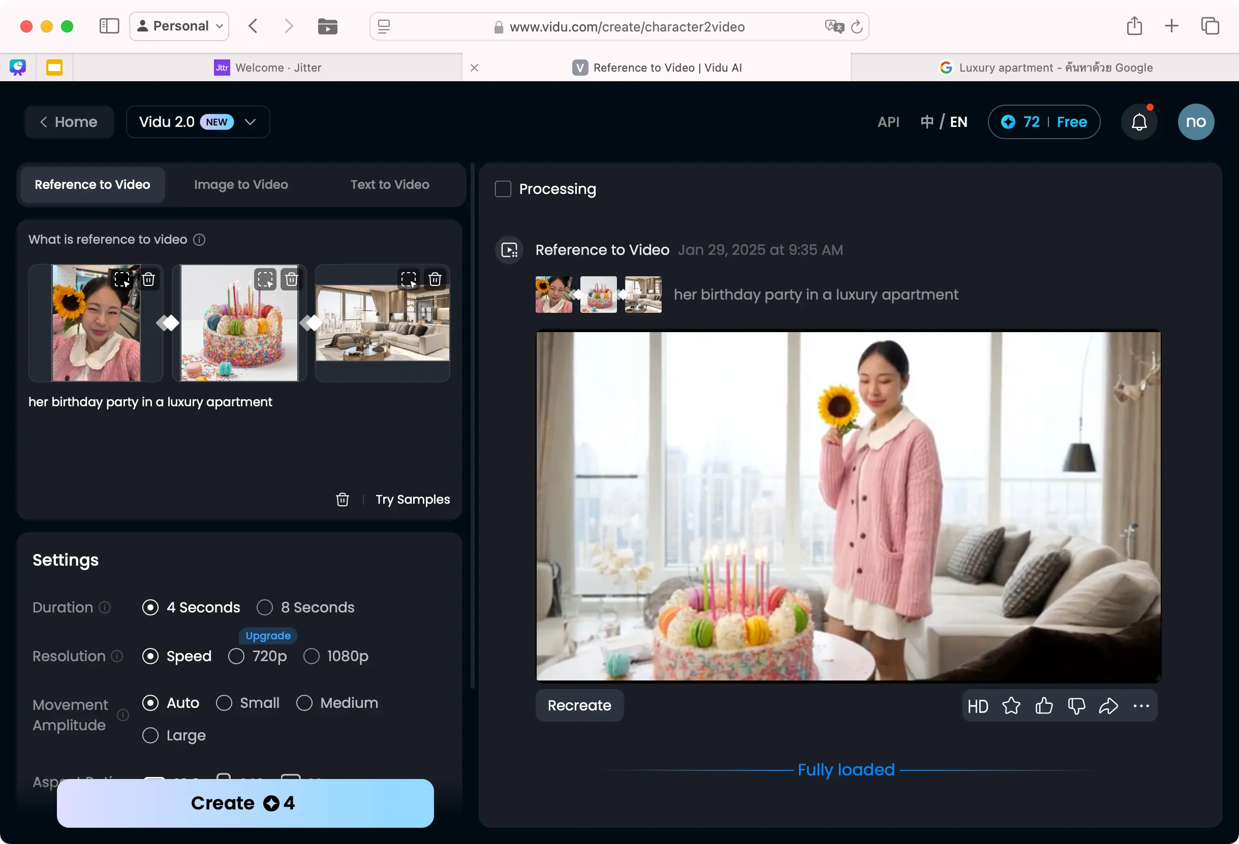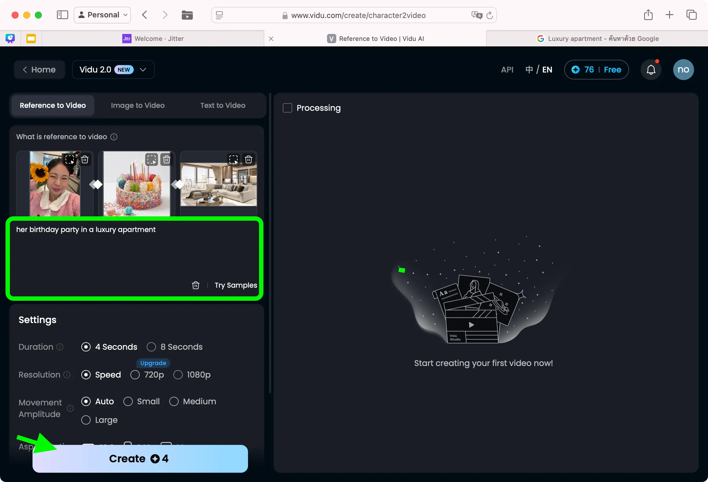 5. สร้างวิดีโอ: คลิกที่ปุ่ม “Create”(ในตรงนี้จะมีจำนวนเครดิตที่ใช้บอกด้วย) และรอให้ Vidu สร้างวิดีโอของคุณได้เลย