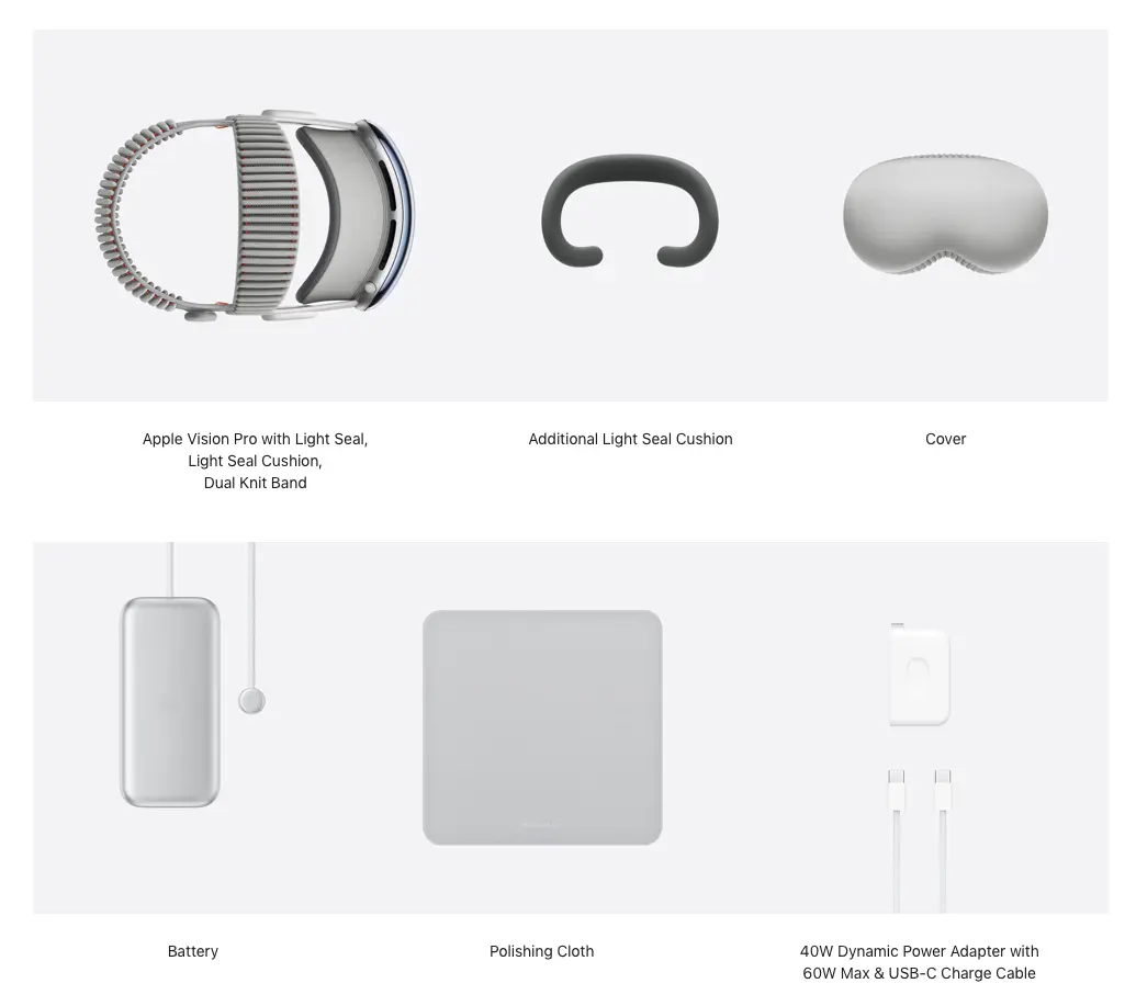 ในกล่องก็จะมีแบตเตอรี่, ตัวครอบ, Light Seal Cushion, ผ้าเช็ดรอย, สายชาร์จ และ Apple Dynamic Power Adapter 40W-60W