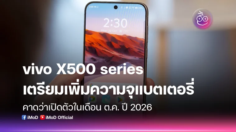 vivo กำลังเตรียมอัปเกรดความจุแบตเตอรี่สำหรับซีรีส์ X500 ที่จะเปิดตัวในปีหน้า มาตามความเคลื่อนไหวหลังจากการเปิดตัวซีรีส์ X300 และ X300 Pro เมื่อเดือนที่ผ่านมา