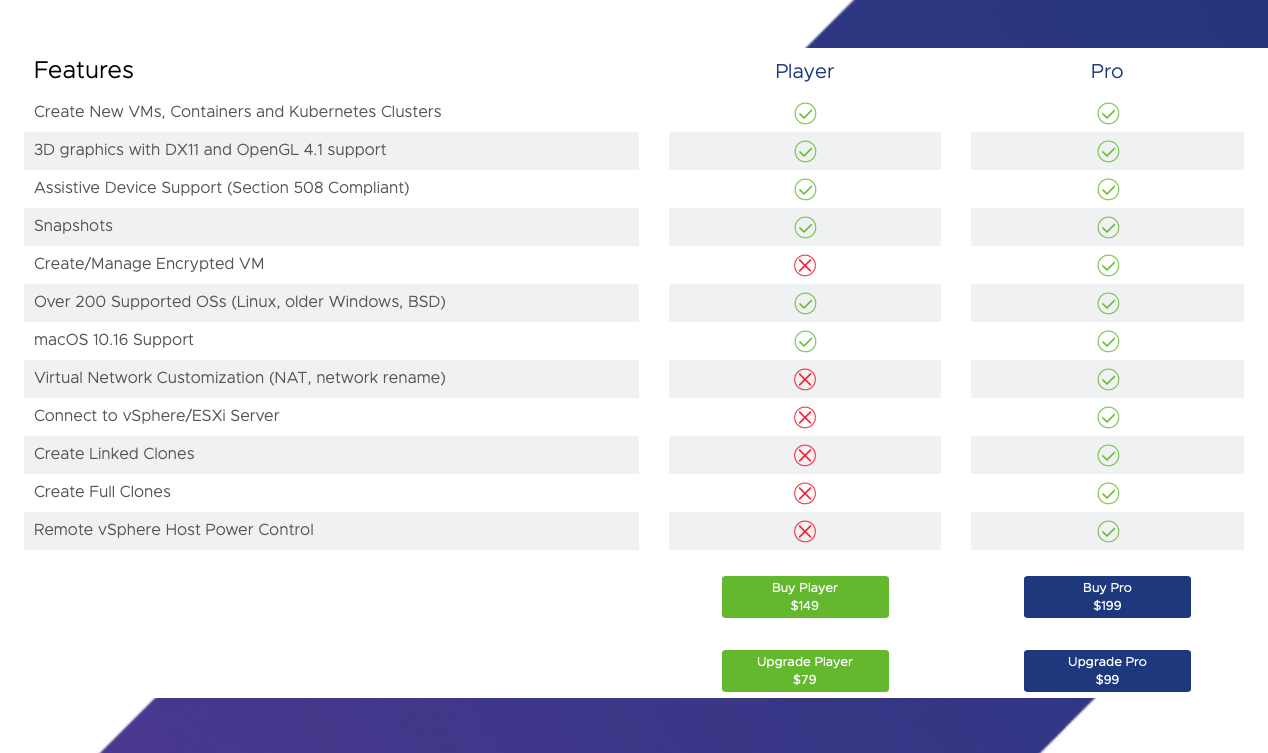 VMware Fusion 13 Player จำหน่ายอยู่ที่ 149 ดอลลาร์ ส่วนรุ่น Pro จำหน่ายอยู่ที่ 199 ดอลลาร์ ดูข้อมูลเพิ่มเติมได้ที่นี่ : https://blogs.vmware.com/teamfusion/2022/11/fusion-13-pro-and-player-are-here.html