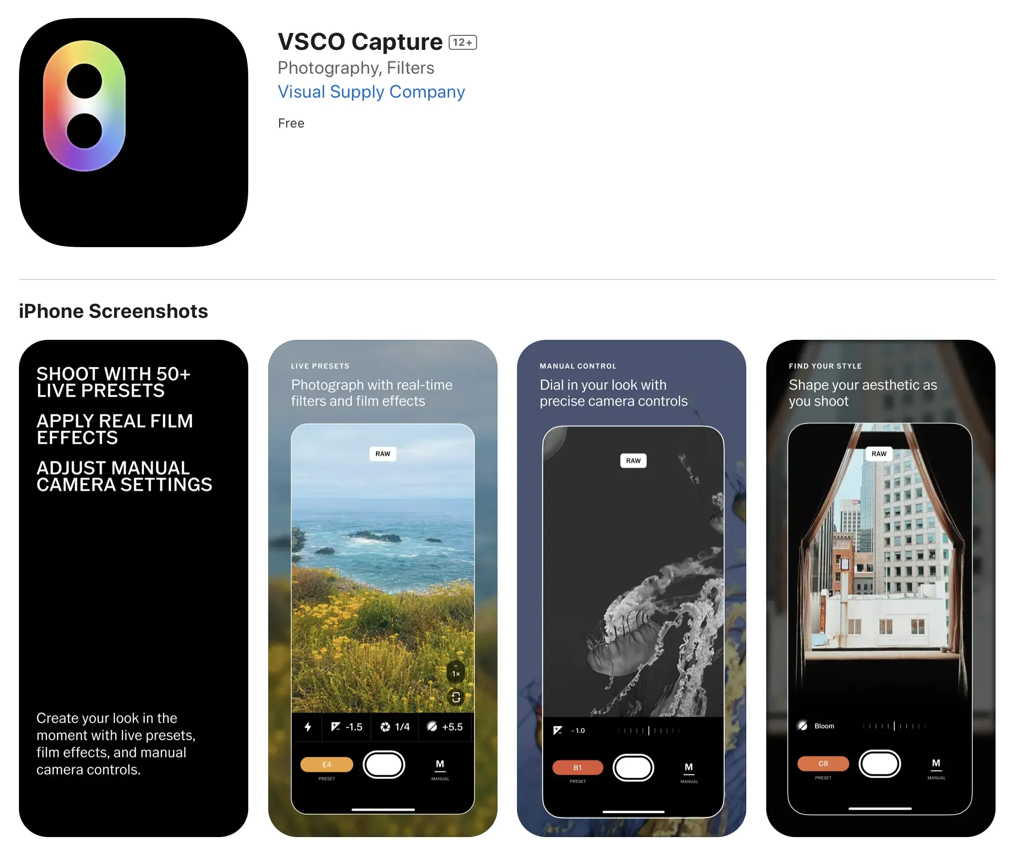 ต่างจากแอปหลักของ VSCO ที่เน้นการแต่งภาพหลังถ่าย VSCO Capture ช่วยให้ผู้ใช้สามารถเลือกและใช้ฟิลเตอร์แนวฟิล์มของ VSCO กว่า 50 แบบได้ทันที ก่อนกดถ่ายภาพ พร้อมระบบ Live Preview ที่สามารถปรับโทนภาพได้ก่อนถ่ายจริง