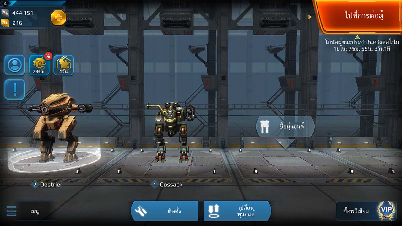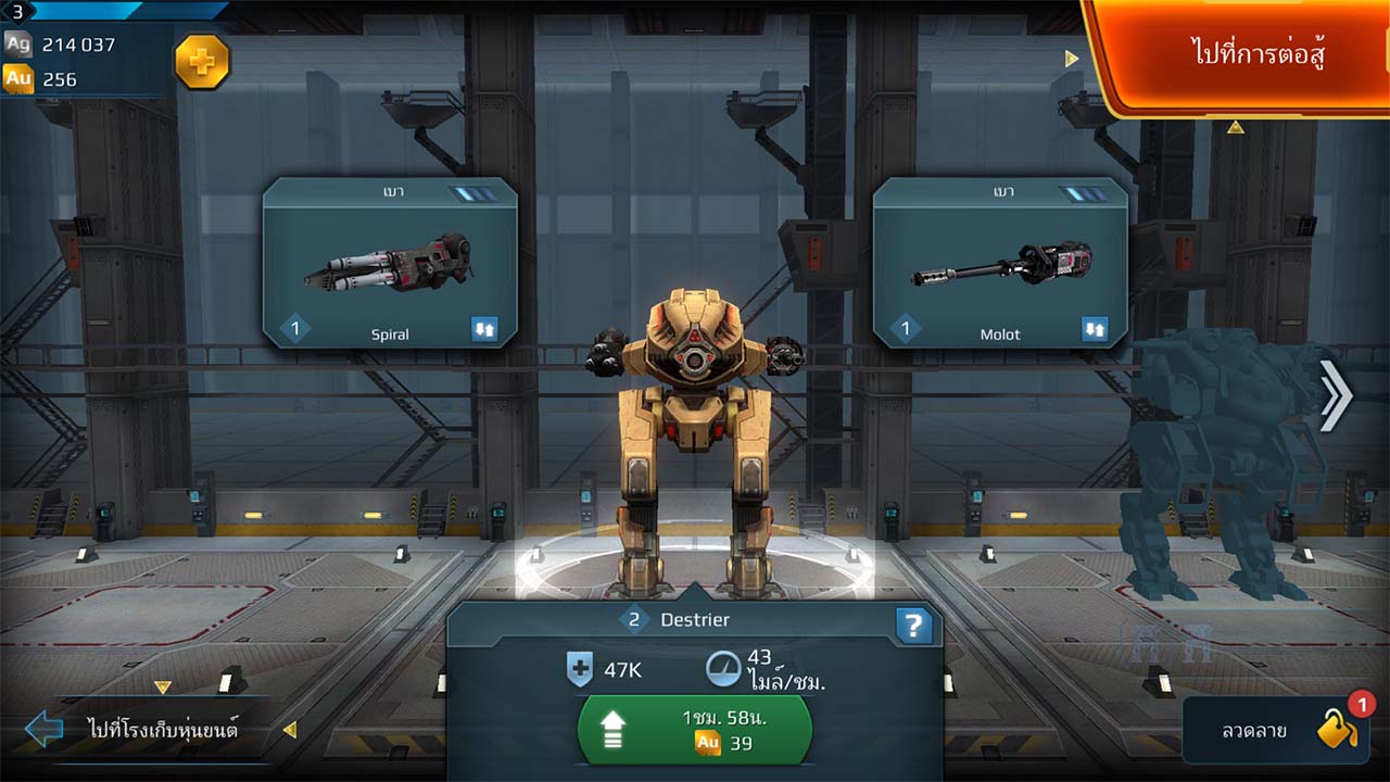 - สามารถเลือกหุ่นยนต์และออกแบบติดอาวุธให้เหมาะสมตรงตามสไตล์ของตัวเองได้ และสามารถอัพเกรดหุ่นยนต์และอาวุธได้