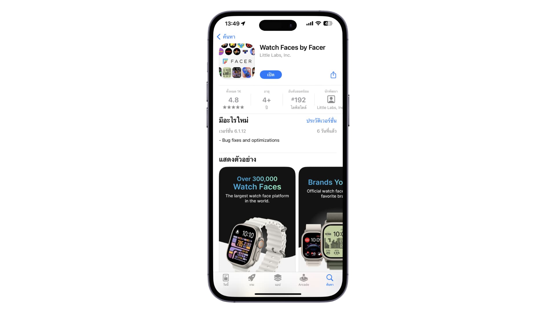 ดาวน์โหลดแอป : https://apps.apple.com/us/app/watch-faces-by-facer/id1057071179