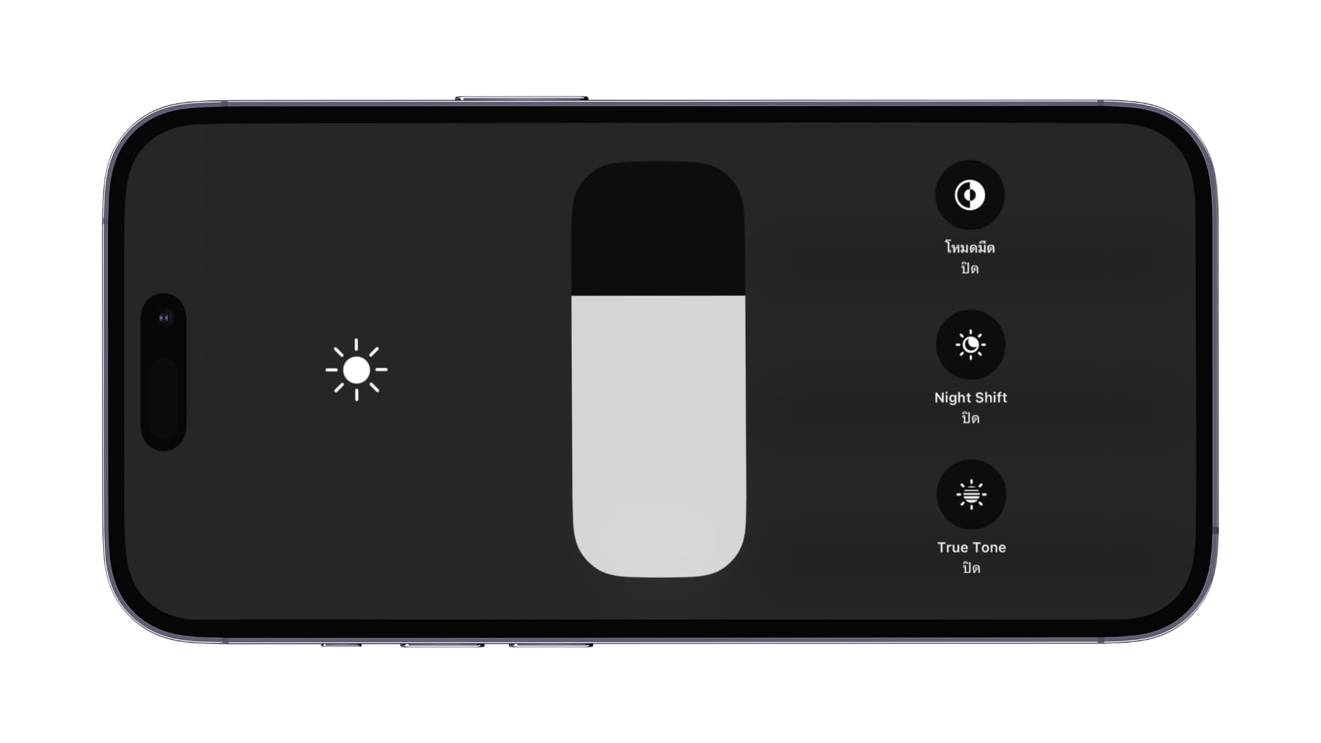 - ปรับความสว่างจอ : ปรับความสว่างจอตามสถานการณ์ หากชอบดูหนังในที่มืด อาจจะเปิดใช้งานโหมด Night Shift เพื่อช่วยถนอมสายตา