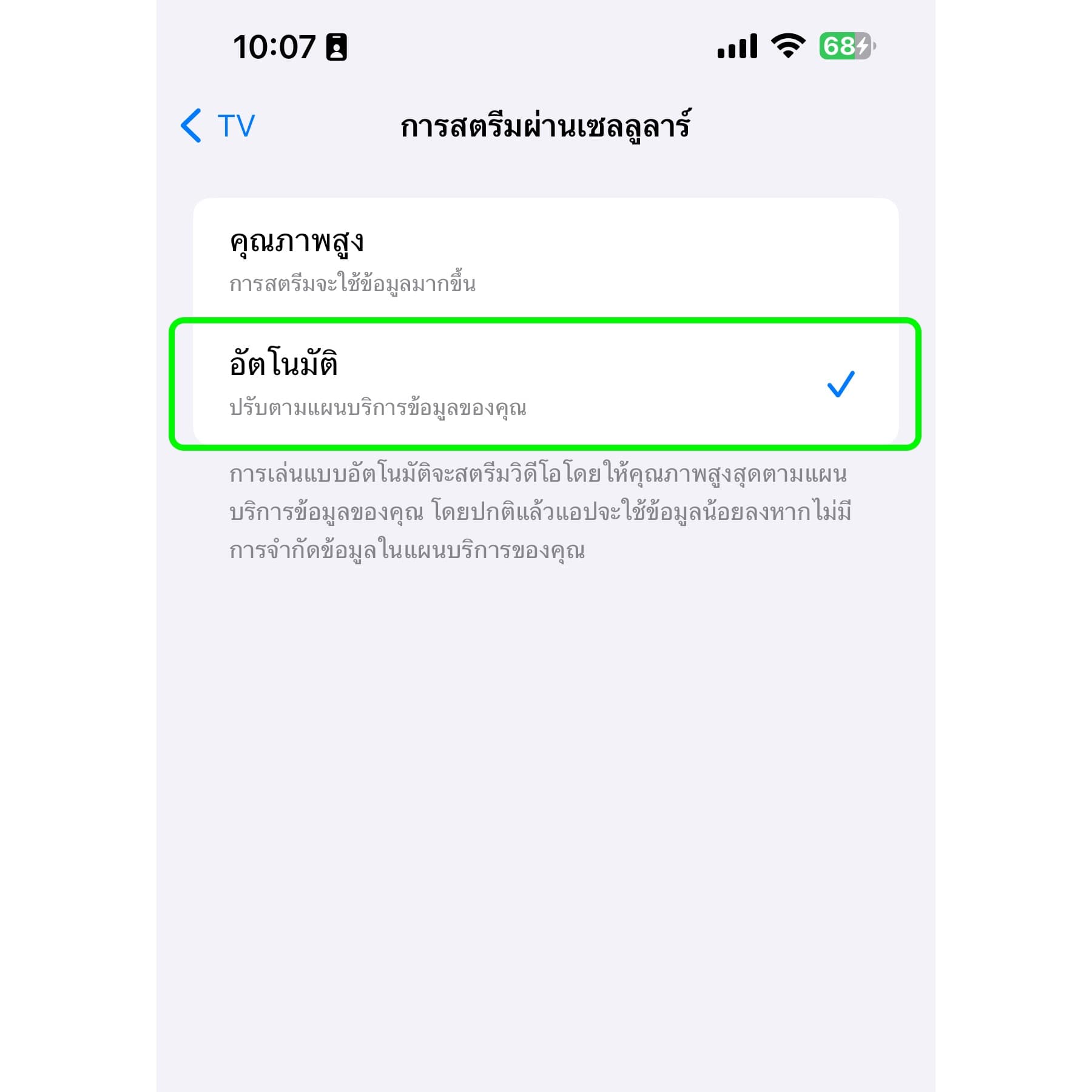จากนั้นเลือกเป็นแบบ “อัตโนมัติ” พอเปิดใช้งาน คุณภาพวิดีโอที่เราชมก็จะถูกปรับตามแผนบริการหรือแพ็กเกจอินเทอร์เน็ตของเรา