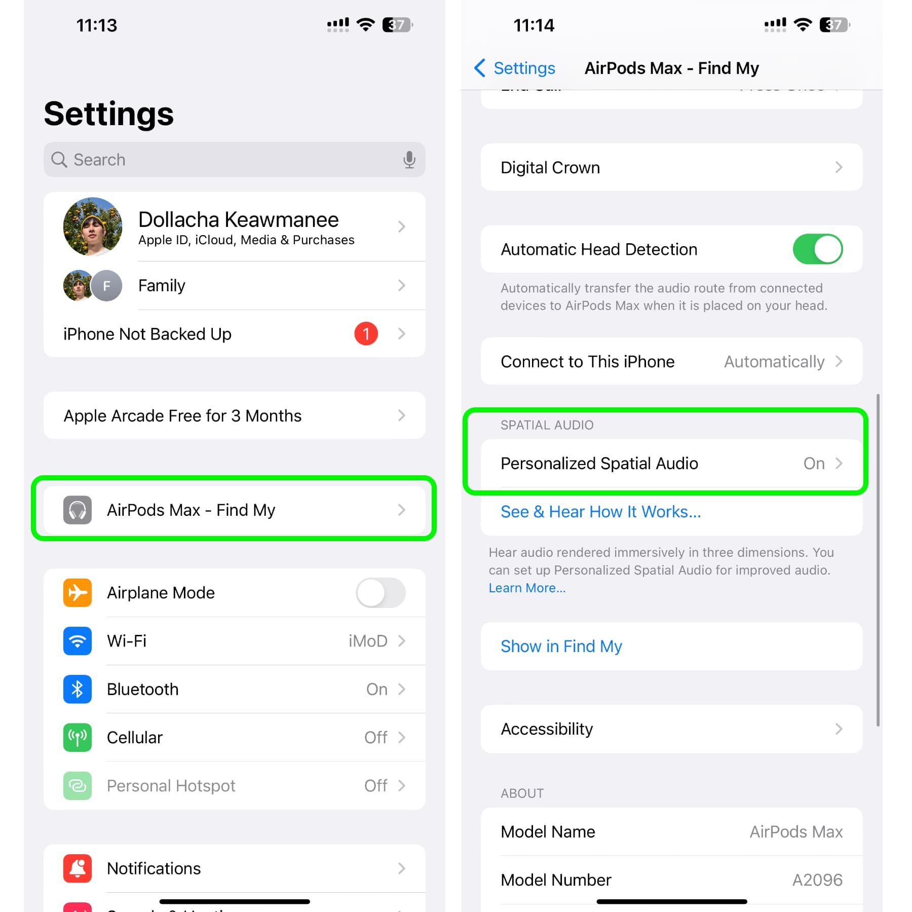 ไปที่แอปการตั้งค่า > แตะที่เมนูกาตั้งค่า AirPods > เปิดใช้งาน “Personalized Spatial Audio”