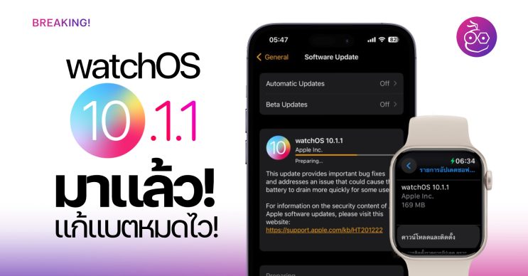 Apple ปล่อย watchOS 10.1.1 ให้อัปเดตแล้ว มาพร้อมการแก้ปัญหาที่ทำให้ตัวเครื่องแบตหมดไว แนะนำให้ผู้ใช้ Apple Watch รุ่นรองรับ กดอัปเดตเลย