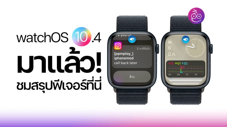 Apple ปล่อย watchOS 10.4 ให้ผู้ใช้ทั่วไปอัปเดตแล้ว Double Tab ดูรายละเอียดการแจ้งเตือน และมาพร้อมการปรับปรุงแก้ไขข้อบกพร่องต่างๆ ดูสรุปฟีเจอร์อื่น ๆ ได้ที่นี่