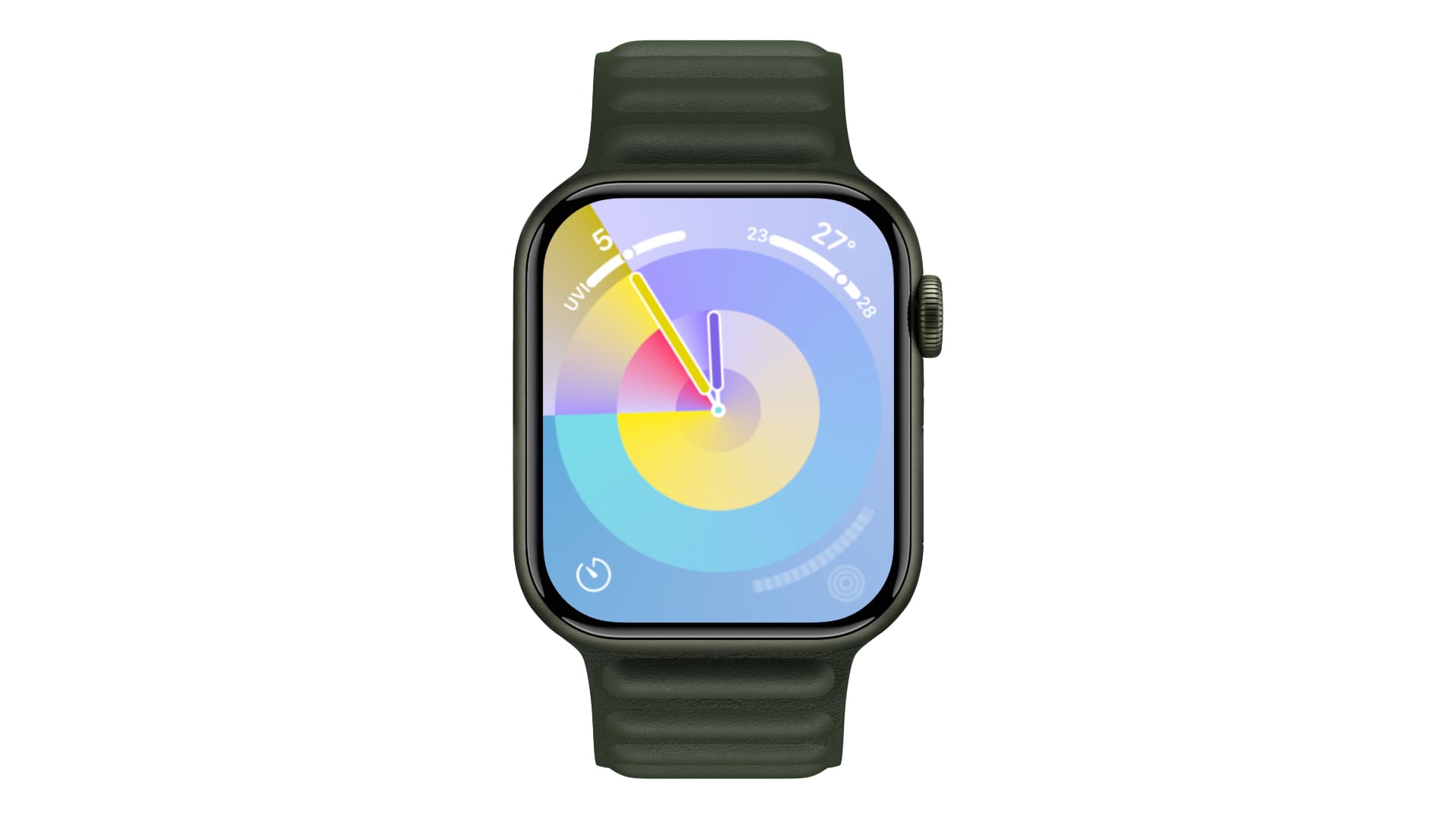 watchOS 10 มีการเพิ่มหน้าปัดใหม่เข้ามา 2 แบบ อันแรกคือ หน้าปัด Palette ที่แสดงสีสันสวยงาม