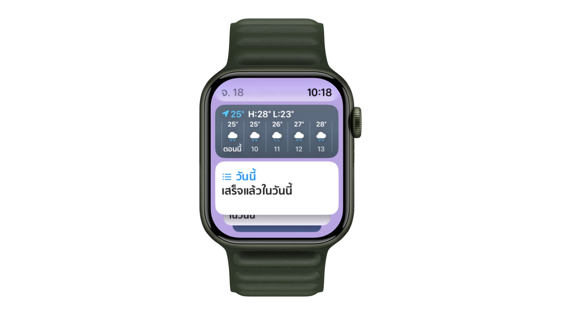 ฟีเจอร์ Smart Stack ใหม่ที่มาพร้อมวิดเจ็ตซ้อน เพียงกดปุ่ม Digital Crown สองครั้งเพื่อเรียก สามารถหมุนปุ่ม Digital Crown เพื่อดูวิดเจ็ตของแอปต่าง ๆ ได้เลย โดยข้อมูลของแต่ละแอปก็จะอัปเดตหรือโต้ตอบได้