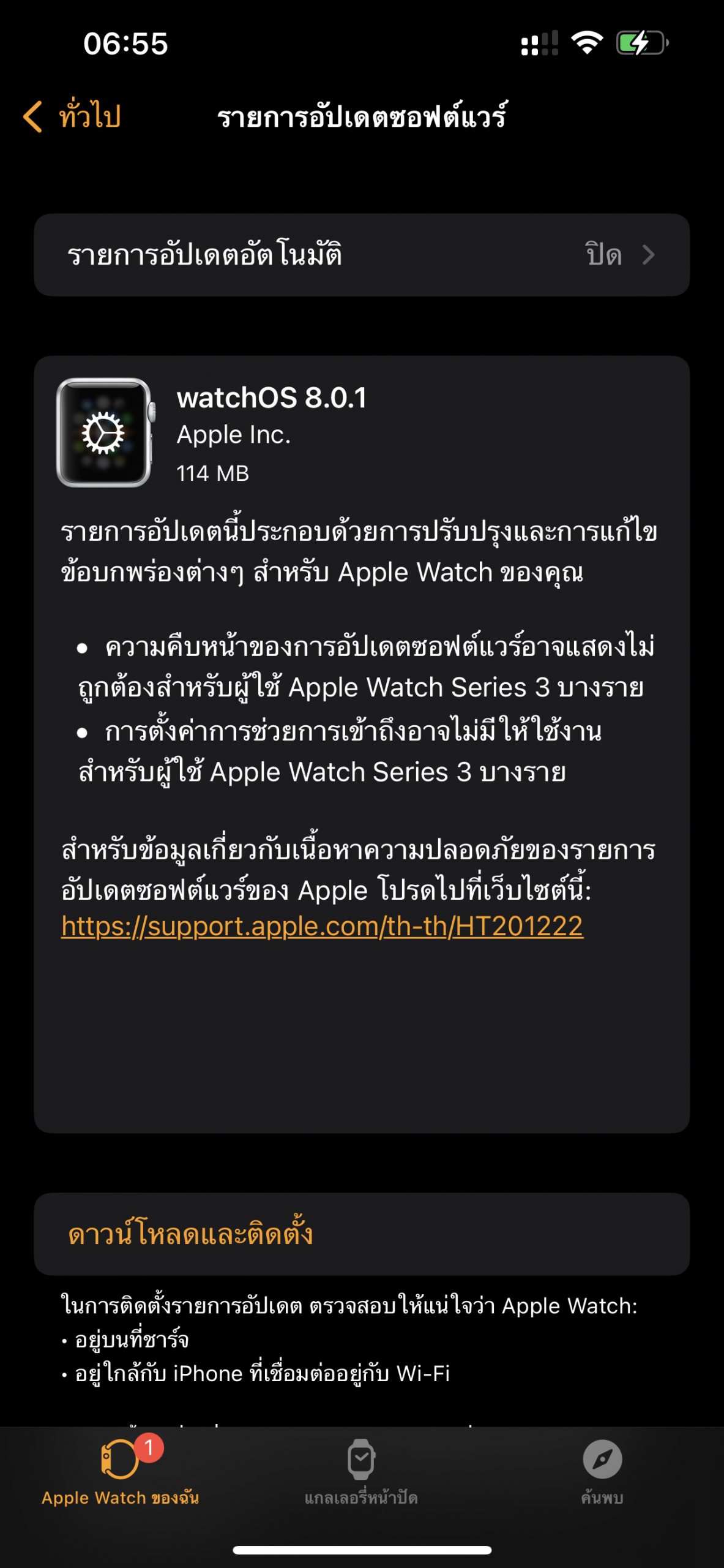 Apple ปล่อย watchOS 8.0.1 ให้อัปเดต แก้ปัญหาสำหรับ Apple Watch Series 3 เช่น ความคืบหน้าอัปเดตซอฟต์แวร์แสดงไม่ถูกต้อง และการตั้งค่าบางอย่างไม่แสดง