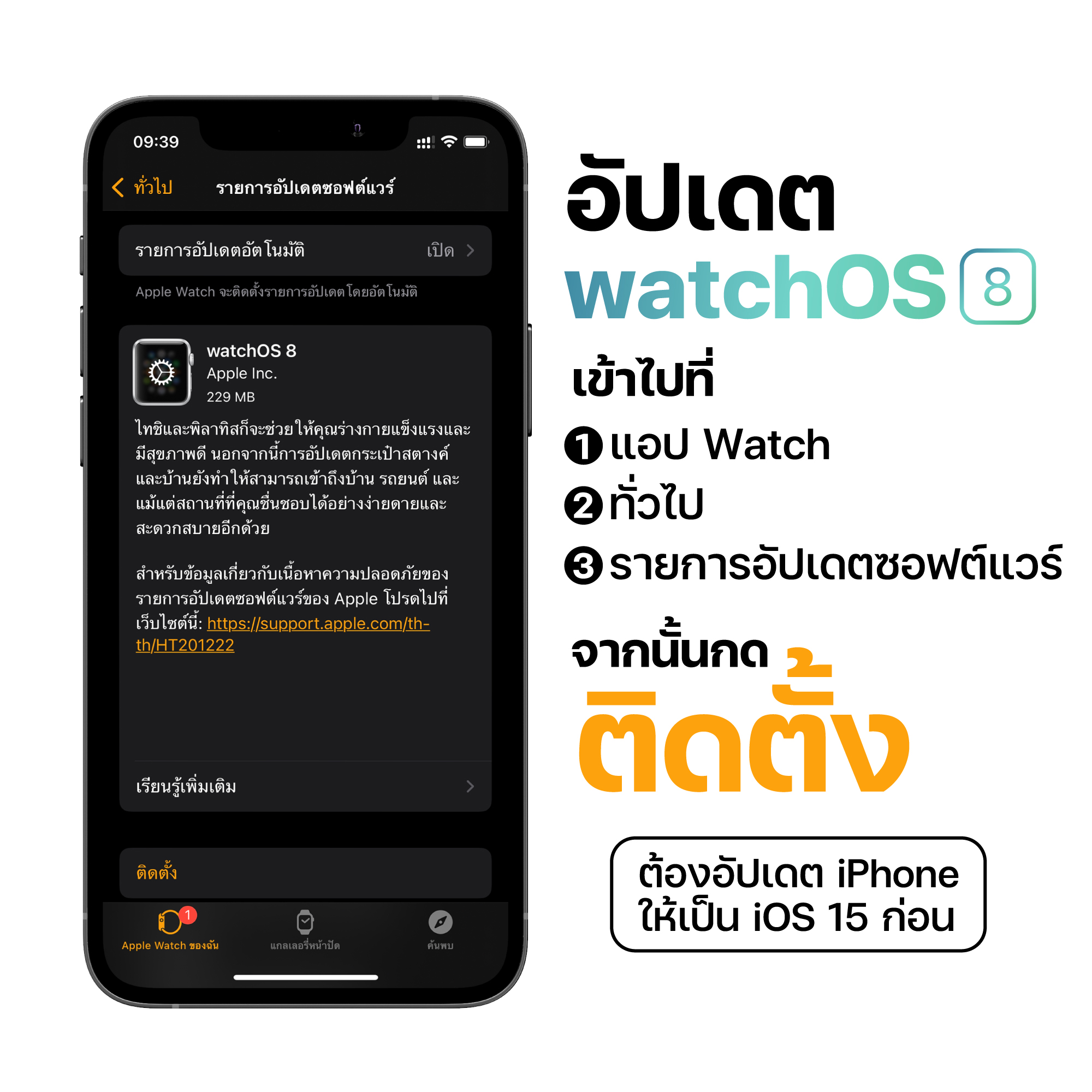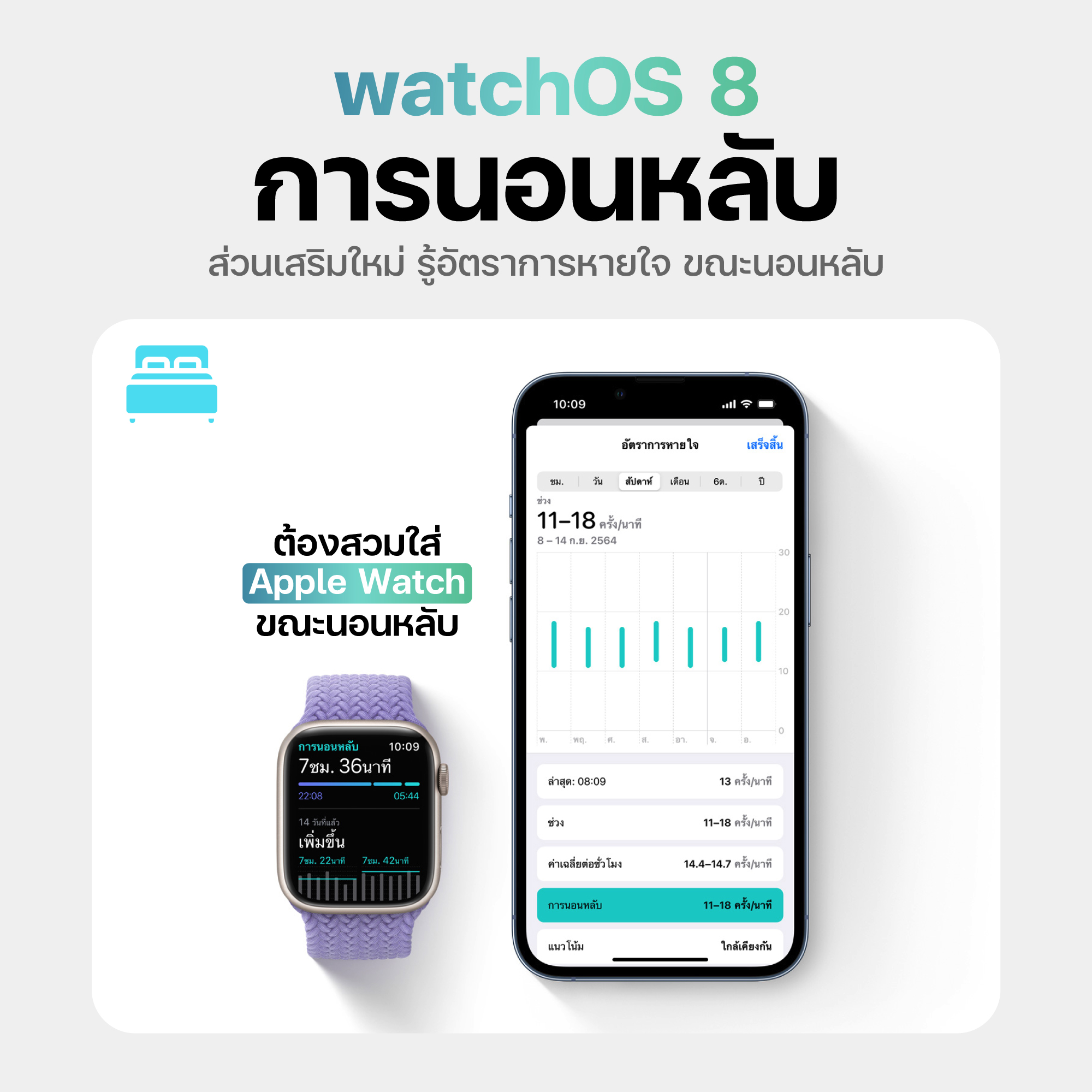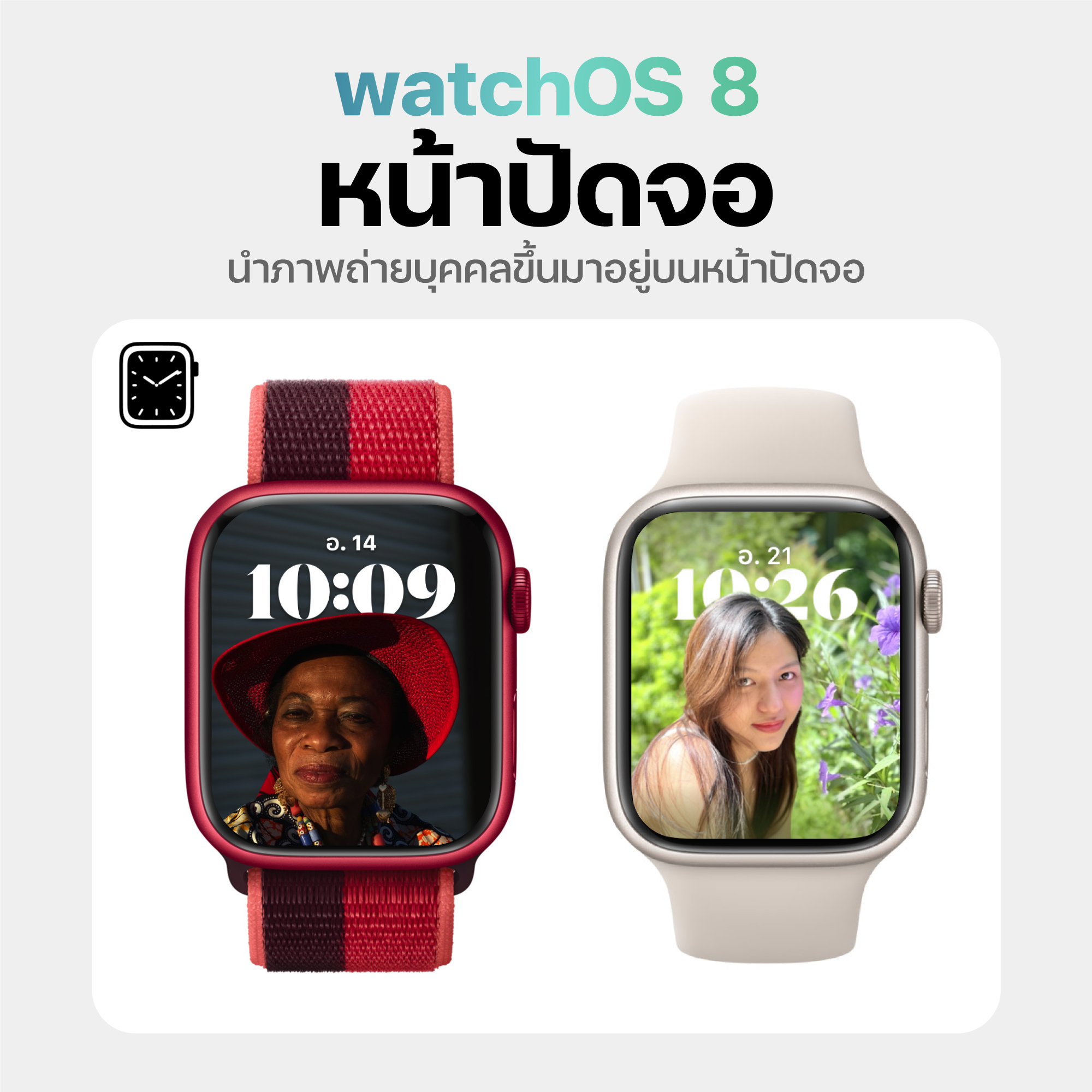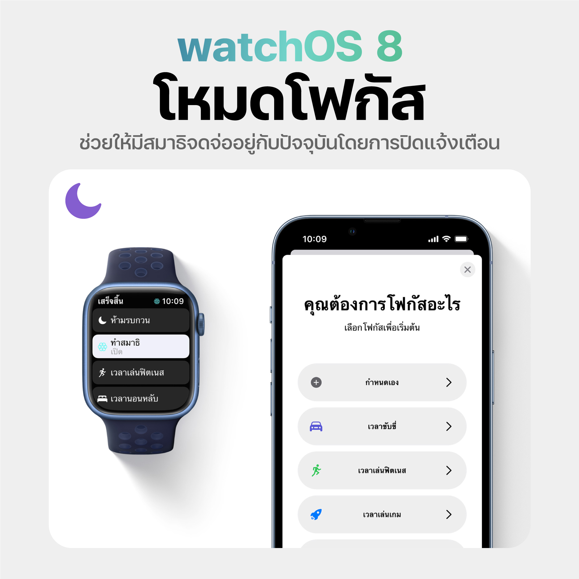 *watchOS 8 ต้องใช้กับ iPhone 6s หรือใหม่กว่า ที่ใช้ iOS 15