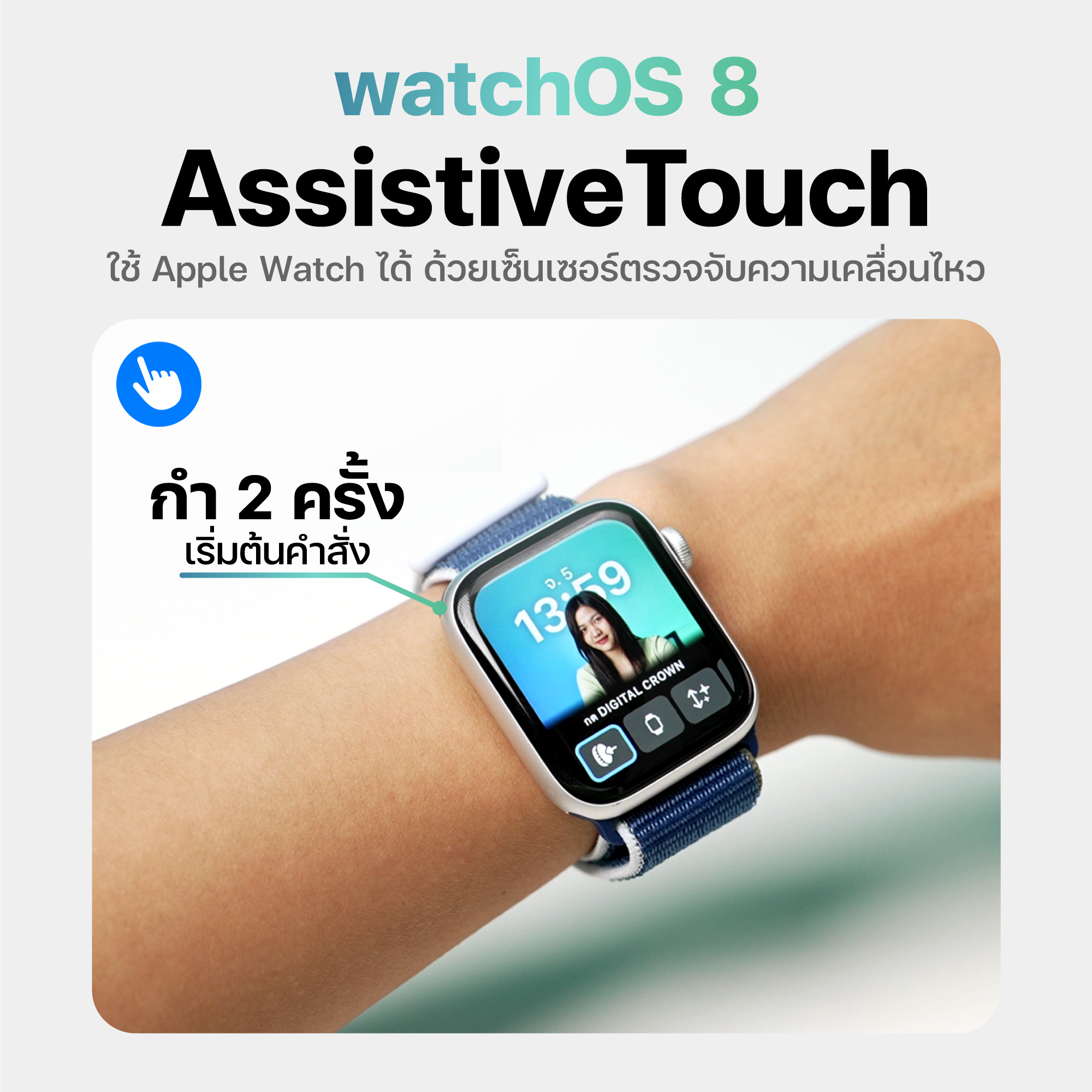 AssistiveTouch แบบใหม่ ควบคุม Apple Watch โดยไม่ต้องสัมผัสหน้าจอ ด้วยเซนเซอร์การตรวจจับความเคลื่อนไหว สั่งการ Apple Watch ด้วยการกำมือ หรือจีบมือ เพราะบางทีเราอาจไม่สะดวกใช้มืออีกข้างในการสัมผัสหน้าจอ