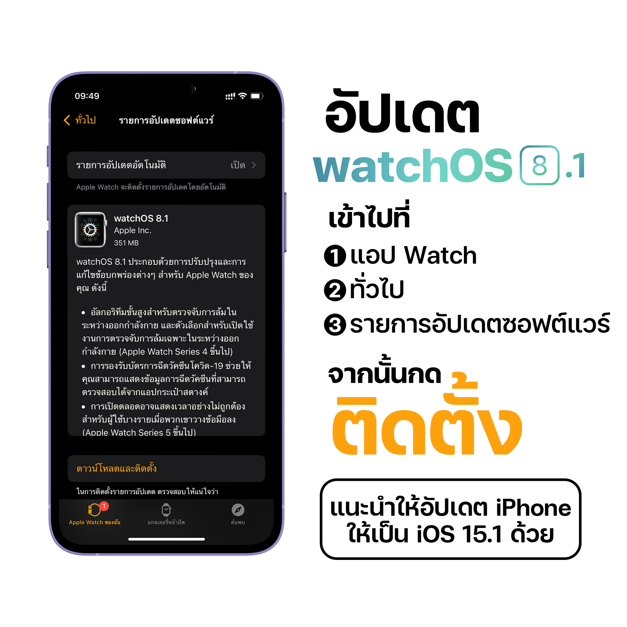 25 ต.ค. 64 เวลา 00.00 น. Apple ได้ปล่อยให้ผู้ใช้ทั่วไปอัปเดต watchOS 8.1แล้ว พร้อมกับแก้ปัญหา และปล่อยฟีเจอร์ใหม่ ให้ผู้ใช้ได้อัปเดตแล้ว จะมีอะไรบ้างมาชมกัน!