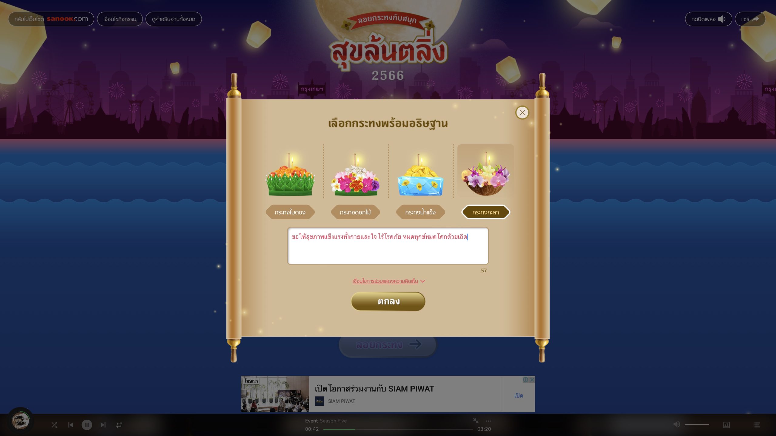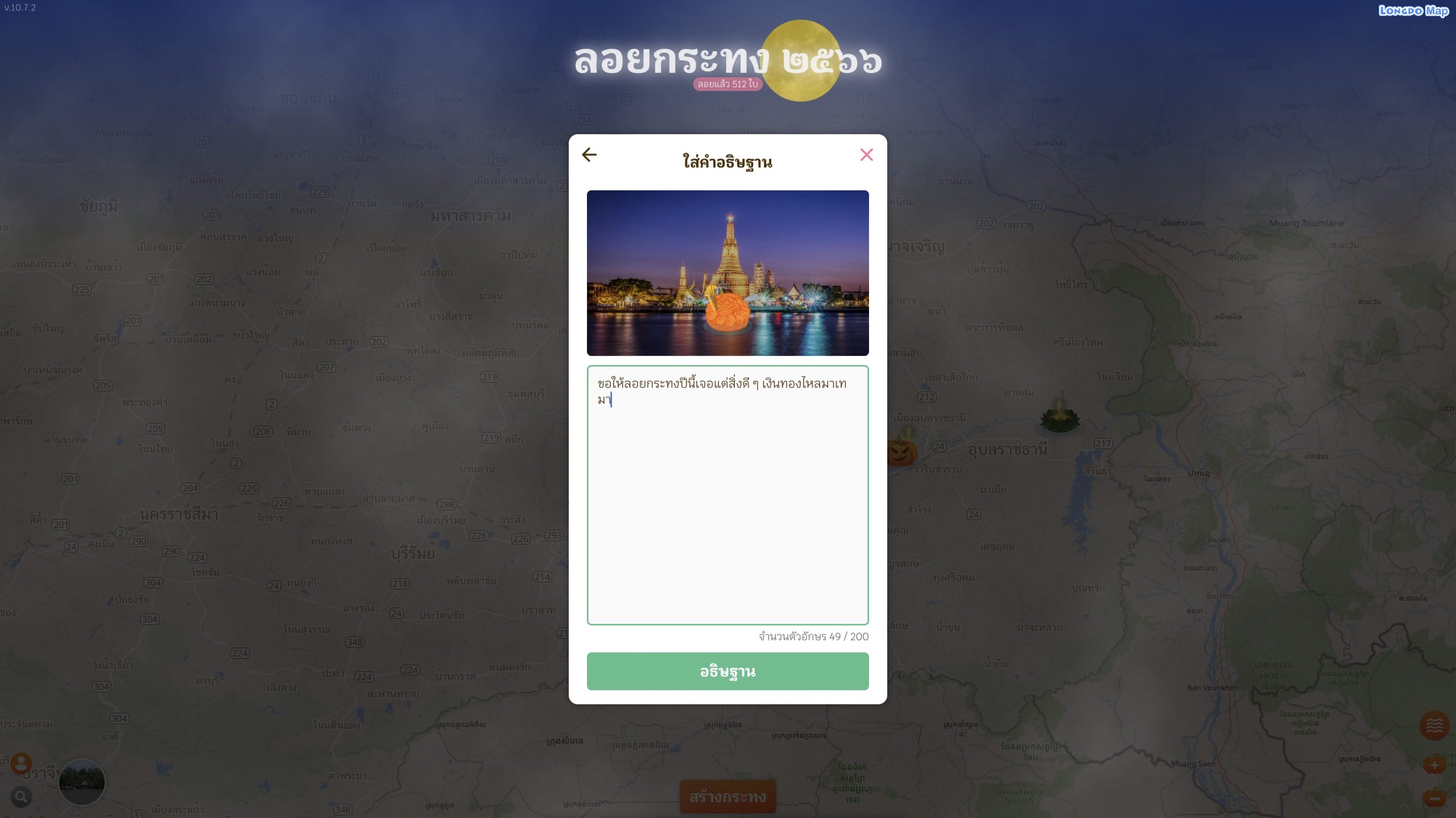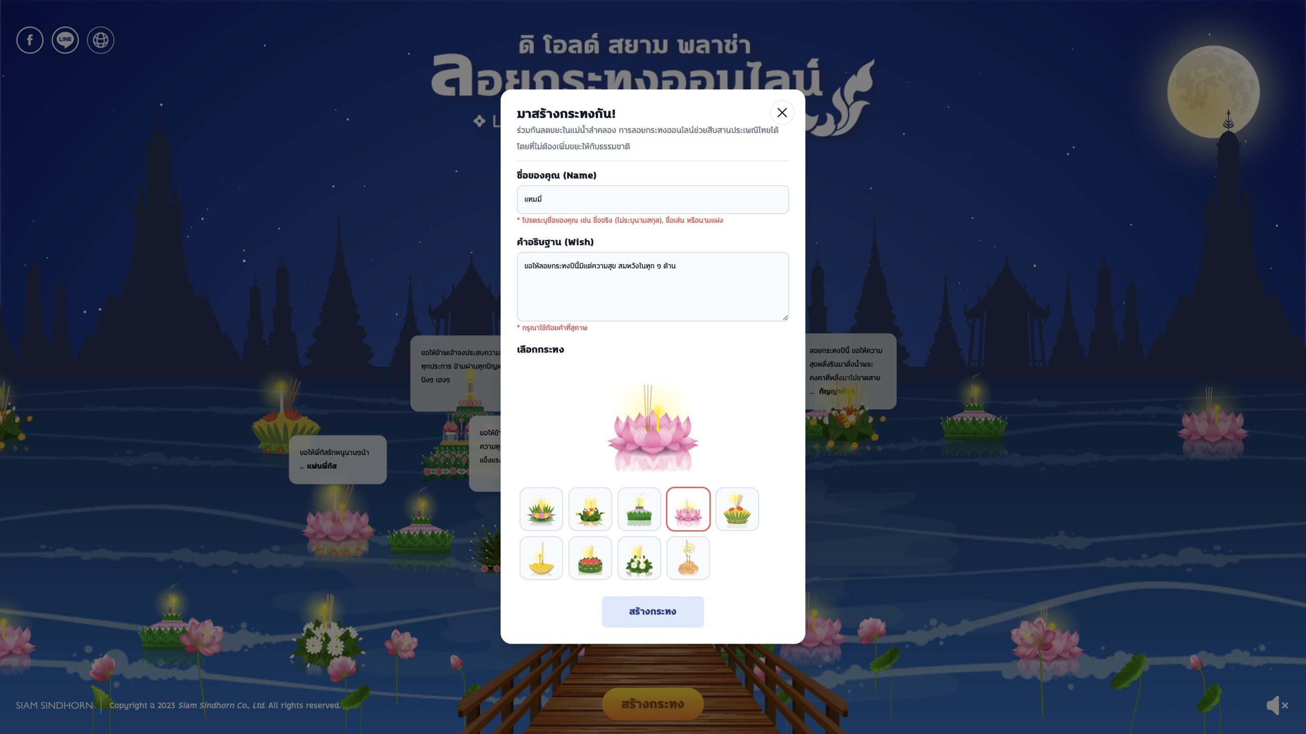 ขั้นแรกจะให้เราเลือกกระทง และเขียนคำอฐิษฐาน