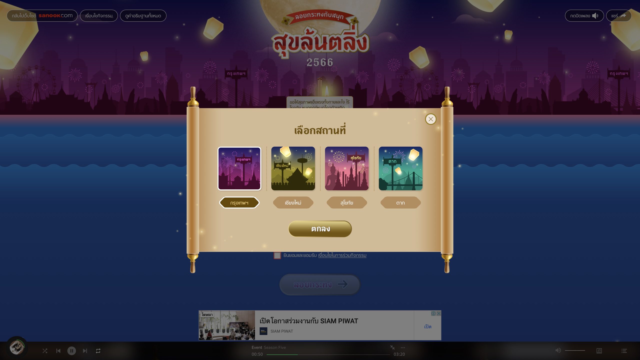 ขั้นที่สองเลือกสถานที่ลอยกระทง มีให้เลือกทั้ง กรุงเทพ เชียงใหม่ สุโขทัยและตาก