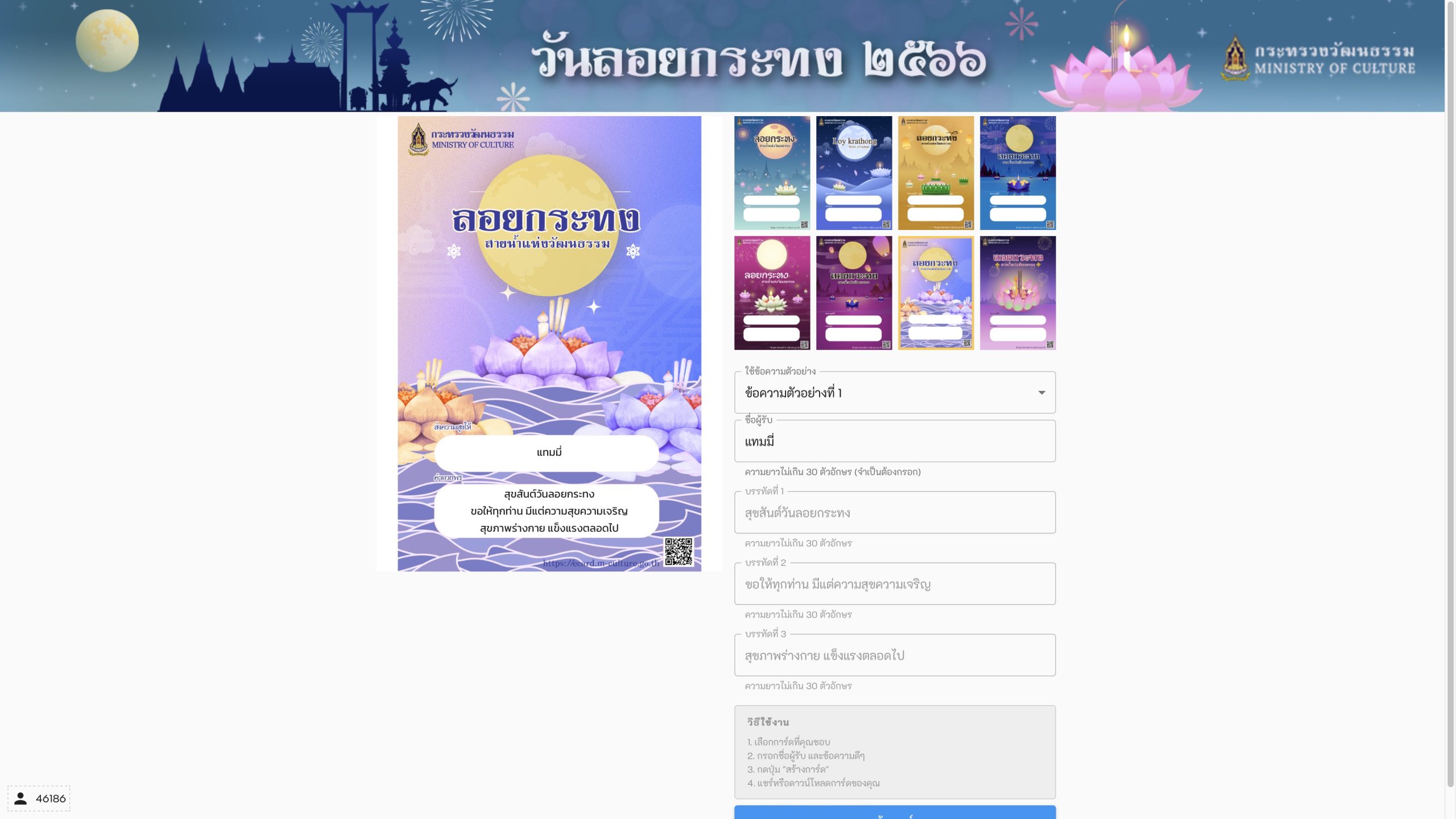 เว็บนี้จะเป็นเว็บทำโปสเตอร์ภาพลอยกระทงพร้อมคำอวยพรเพื่อส่งให้กับคนอื่น ๆ