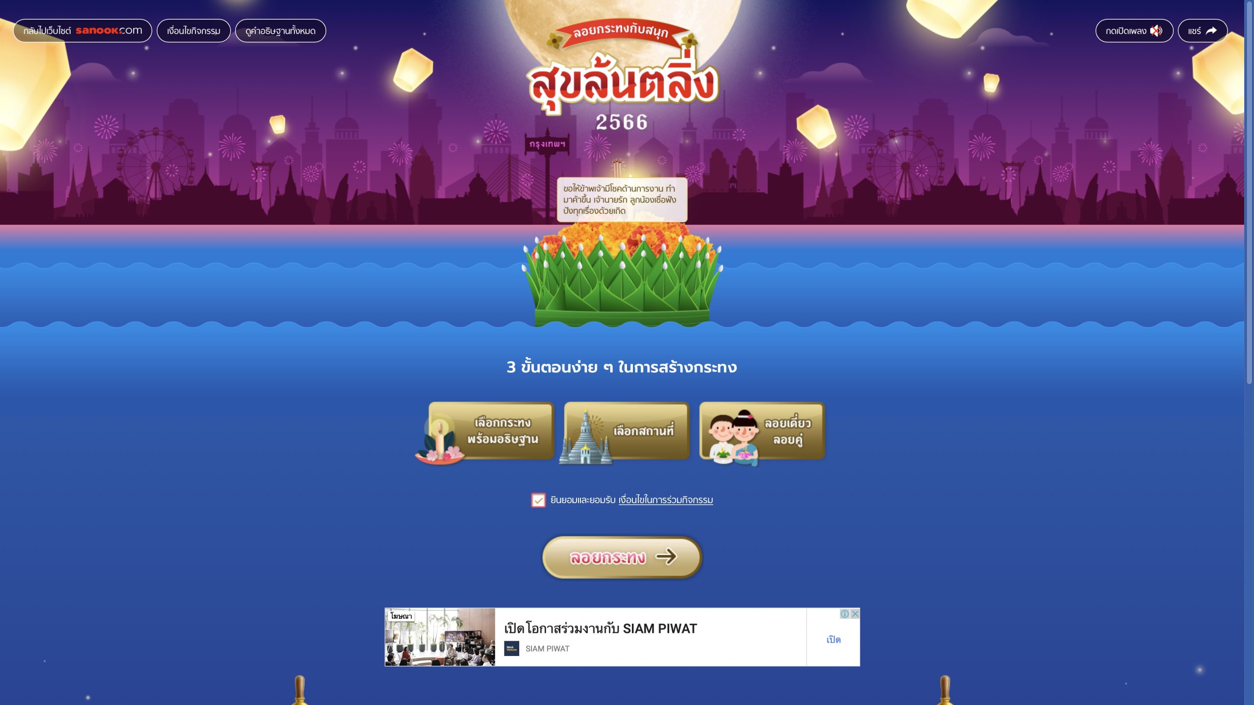 เว็บนี้จะเป็นภาพการ์ตูนอนิเมชันลอยกระทงน่ารัก ๆ แถมยังมีเสียงพลุเพื่อให้เข้ากับบรรยากาศวันลอยกระทงด้วย ทีมงานลองเล่นแล้วรู้สึกเหมือนอยู่ในงานลอยกระทงเลย