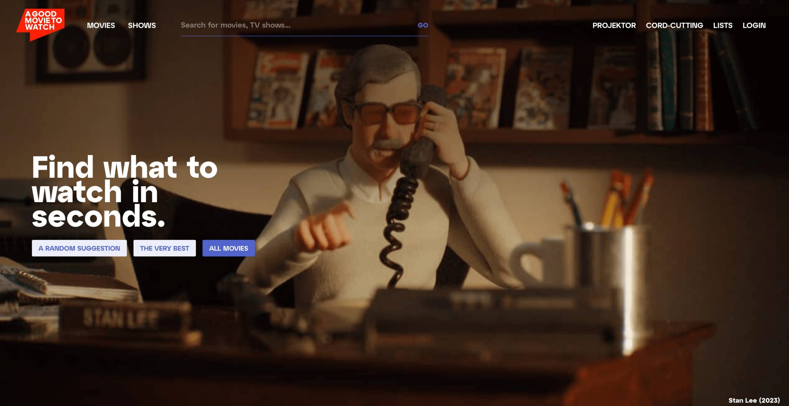 วันนี้ทีมงานจะพามาแนะนำเว็บไซต์ agoodmovietowatch ที่สามารถจะช่วยให้เราได้เลือกหนังที่น่าสนใจเวลาไม่รู้จะดูอะไร