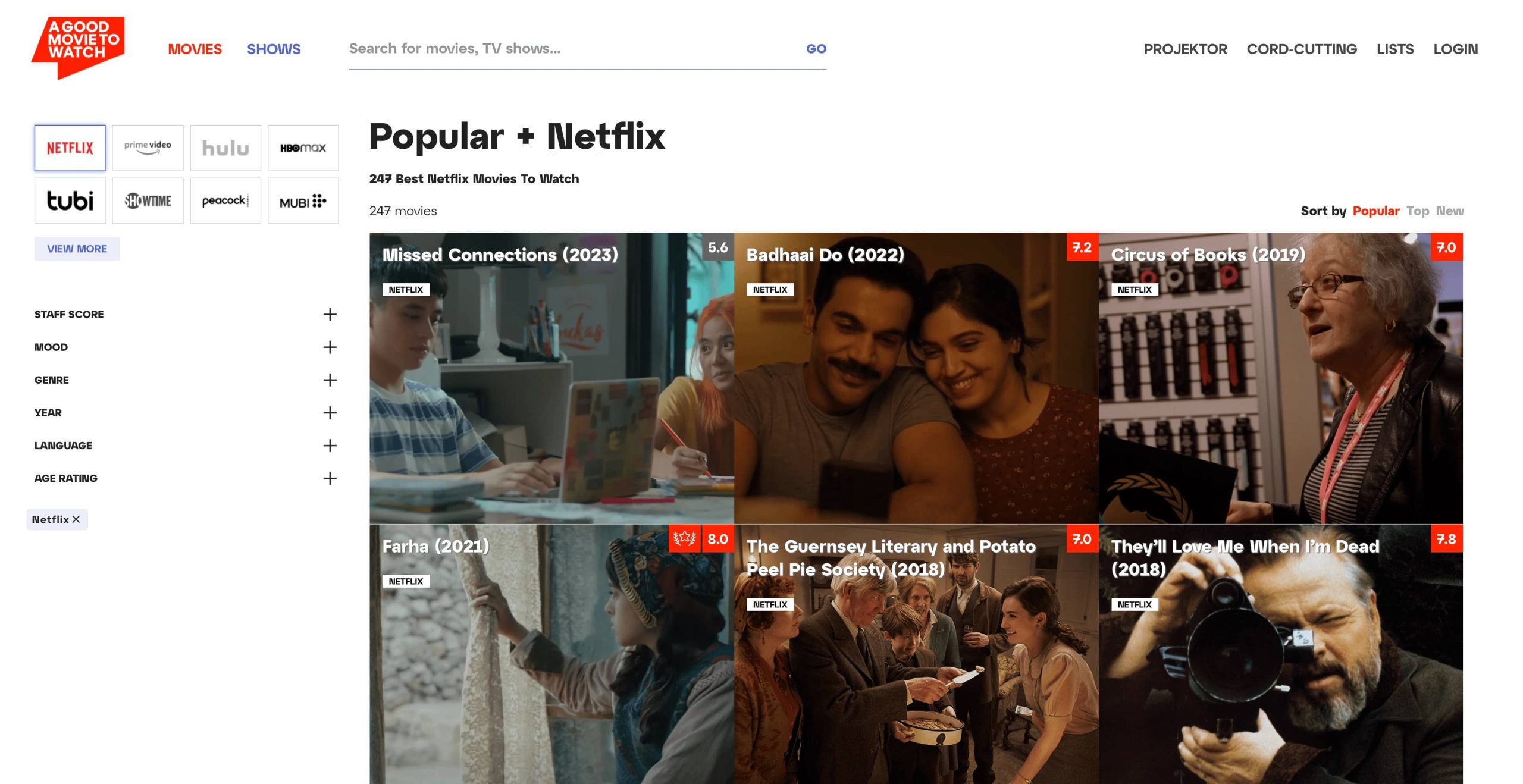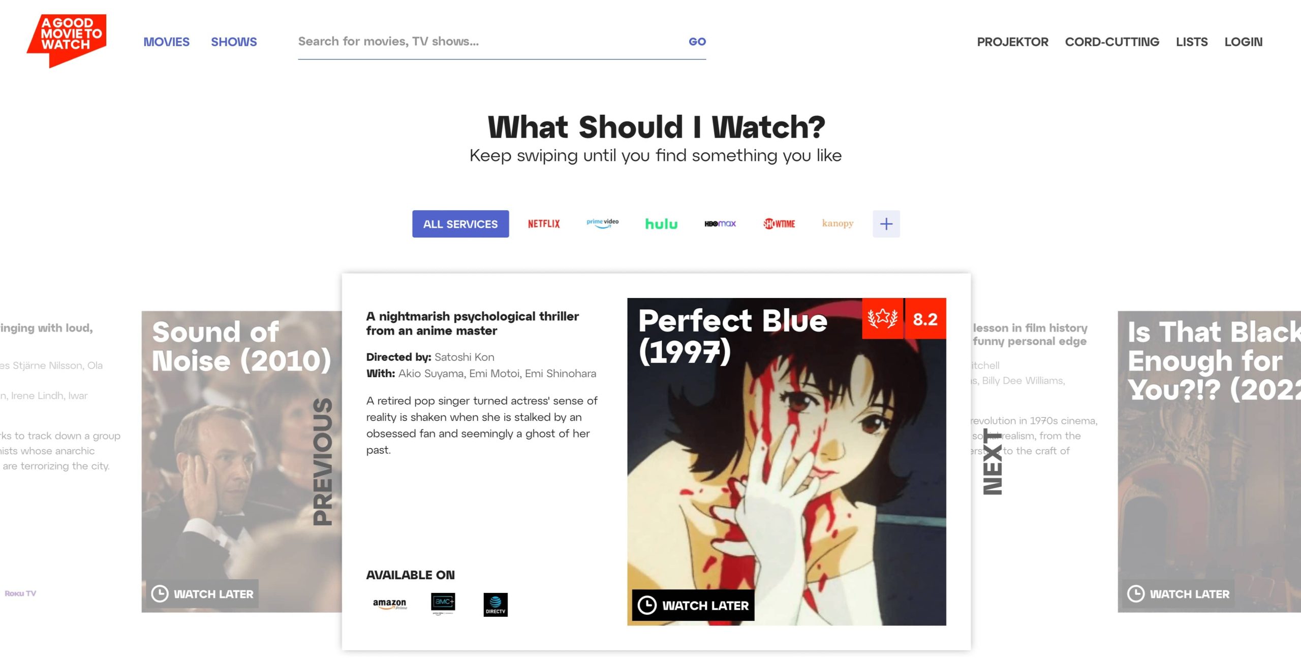 A Good Movie To Watch เว็บหาหนังเวลาที่ไม่รู้จะดูอะไร ในแอปสตรีมต่างๆ