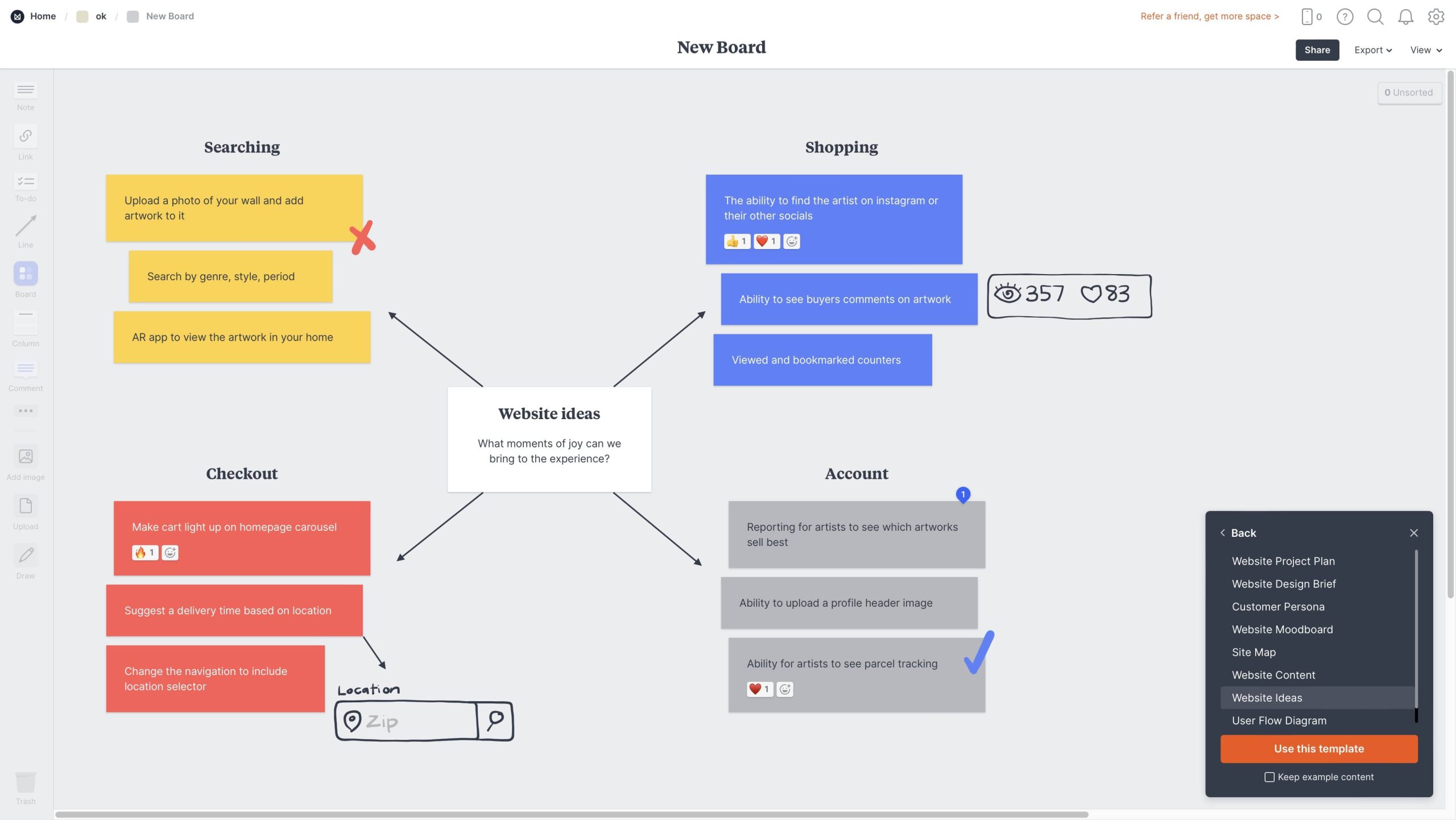 เว็บนี้สร้างแผนผังได้ไว แถมยังมี Note เอาไว้ใส่แปะได้ด้วยนะ น่ารักมาก ๆ นอกจากนี้ยังวาดรูปบนแผนผังได้ด้วยนะ