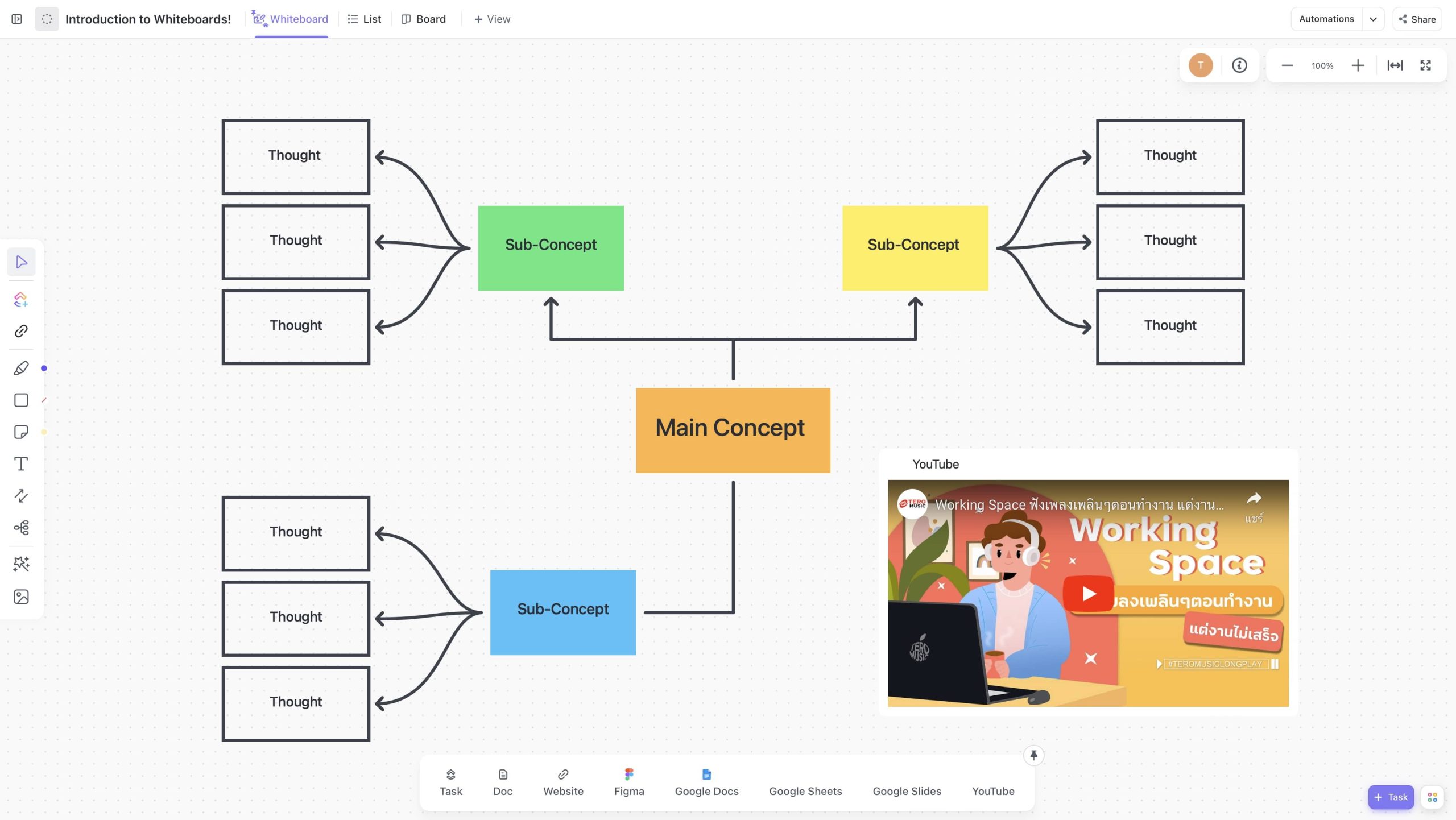 เว็บนี้สร้างแผนผังได้เจ๋งมาก แถมยังมีฟีเจอร์ที่ทำให้ตัวเว็บน่าสนใจมาก นั่นก็คือการแปะลิงก์ต่าง ๆ บนแผนผังได้ เช่น Youtube เป็นต้น