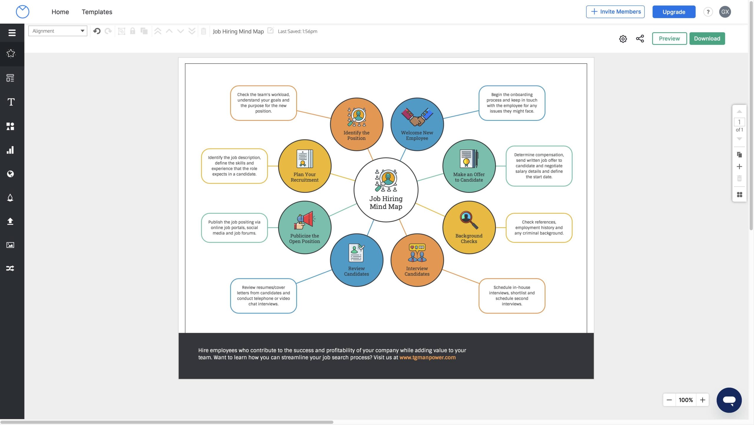 เว็บนี้สร้างแผนผังออกมาได้สวยมาก เพราะมีทั้งสี และภาพประกอบให้เลือกได้ตามใจ นอกจากน้ีตัวเว็บยังทำอินโฟกราฟฟิกได้ด้วย