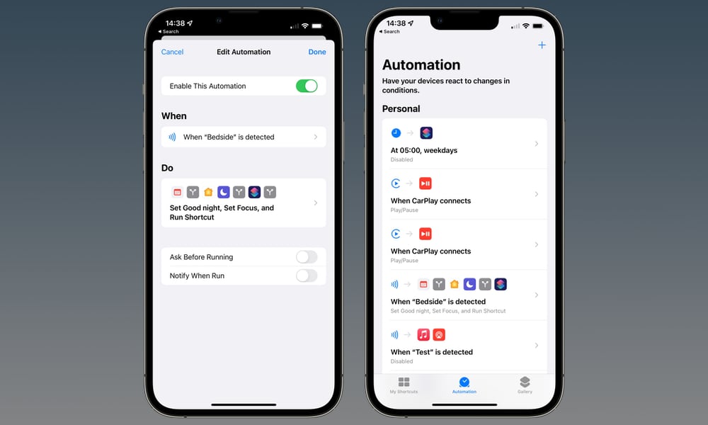 เราคงเคยตั้งค่าและใช้งานคำสั่งลัดแบบอัตโนมัติ (Shortcut Automation) กันมาบ้างแล้ว ก่อนหน้านี้ก่อนที่คำสั่งลัดอัตโนมัติจะเริ่มทำงาน เราก็จะเห็นการแจ้งเตือนเสมอ อาจจะสร้างความรำคาญเล็กน้อย แต่ใน iOS 15.4 ได้เพิ่มปุ่มเปิด-ปิด “แจ้งเตือนเมื่อสั่งทำงาน (Notify When Run)” เมื่อเราปิด เราก็จะไม่เห็นการแจ้งเตือนการทำงานของคำสั่งลัดอัตโนมัติอีกต่อไป