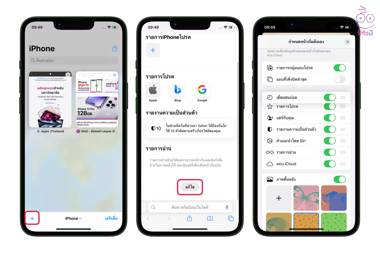 ในหน้ากลุ่แถบ เพียงแตะไอคอน + แล้วเลือกแก้ไข จากนั้นก็ปรับแต่งหน้าเริ่มต้นของกลุ่มแถบได้เลย