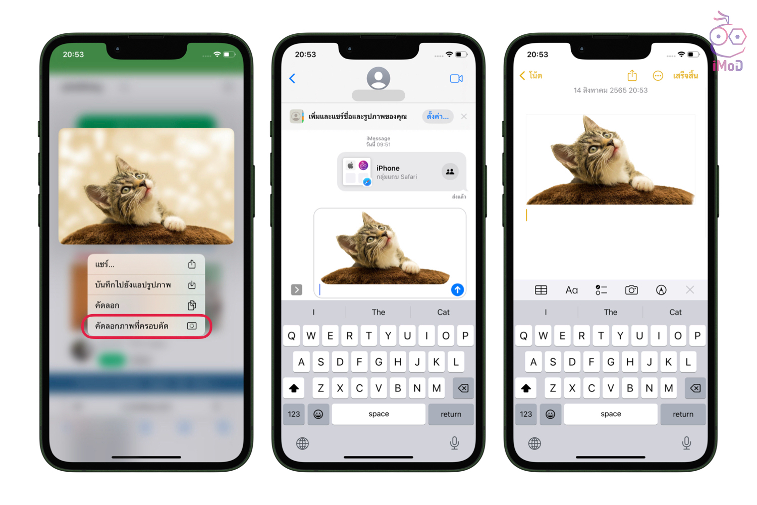 ฟีเจอร์สนุก ๆ ที่เพิ่มเข้ามาใน iOS 16 ก็คือ ผู้ใช้สามารถลากวัตถุออกจากรูปภาพได้โดยตรง โดยใช้ Safari เปิดหน้าเว็บไซต์ที่มีรูปภาพ จากนั้นก็แตะค้างที่รูปภาพ แล้วเลือกตัวเลือก คัดลอกภาพที่ครอบตัด (Copy Subject) จากนั้นก็นำไปวางในแอปอื่น เช่น แอปข้อความ แอปโน้ต แอปเมล ภาพที่ได้ก็จะเป็นภาพเฉพาะวัตถุที่ไม่มีพื้นหลัง