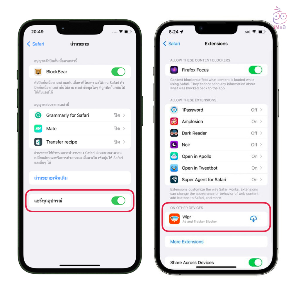 ช่วยให้การใช้งานส่วนขยายบน Safari ทุก ๆ อุปกรณ์ของเราที่ใช้ Apple ID เดียวกัน สามารถใช้งานส่วนขยายที่ต้องการได้สะดวกมากขึ้น