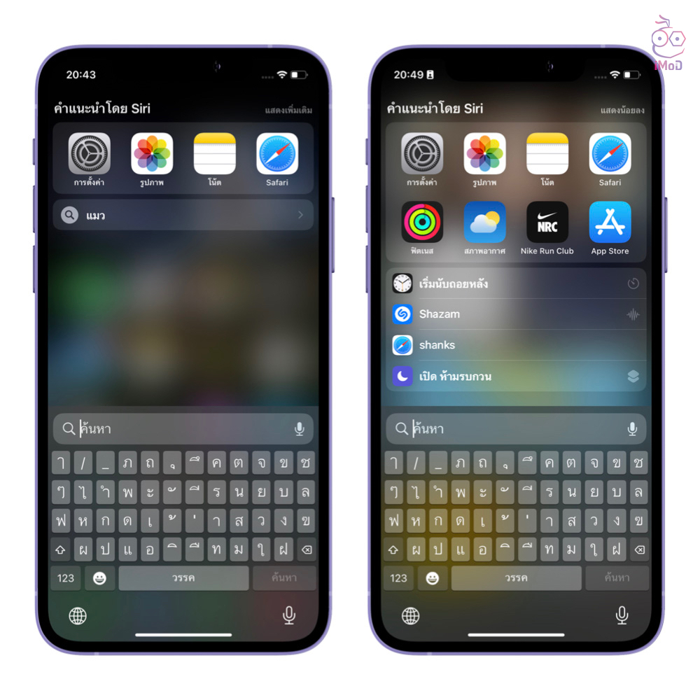 Apple ได้อัปเดตคำแนะนำคำแนะนำโดย Siri ให้ดีขึ้น โดยใช้ข้อมูลจากการค้นหาล่าสุดที่ทำให้เราย้อนดูผลลัพธ์ได้อย่างรดวเร็ว รวมถึงพิจารณาบริบทของผู้ใช้ เพื่อแสดงสิ่งที่จำเป็นต้องใช้งานหรือมีความเกี่ยวกับกับสิ่งที่เราทำในปัจจุบันมากที่สุด