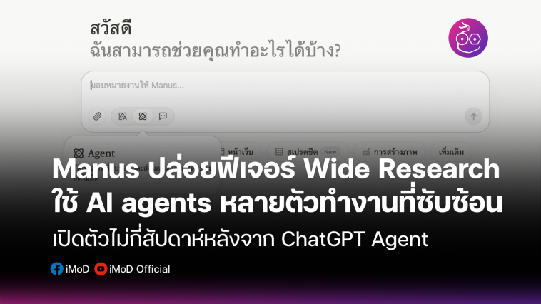 Manus สัญชาติจีนประกาศเพิ่มฟีเจอร์ใหม่ “Wide Research” ใช้ AI agents หลายตัวในการทำงานที่ซับซ้อนและขนาดใหญ่ที่ใช้ต้องการข้อมูลจำนวนมากได้อย่างง่ายมากขึ้น