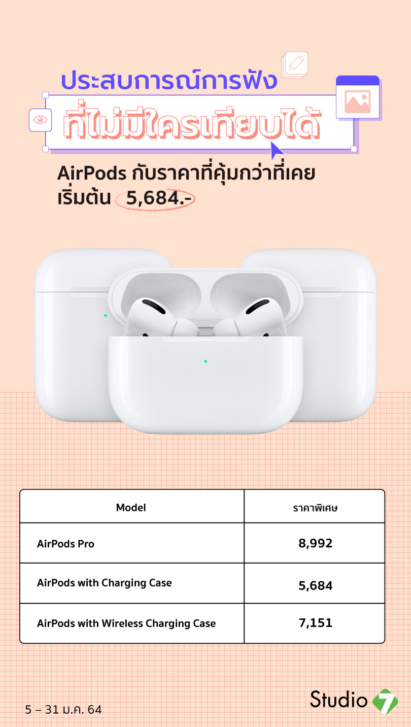 • AirPods เริ่มต้นเพียง 5,684 บาท