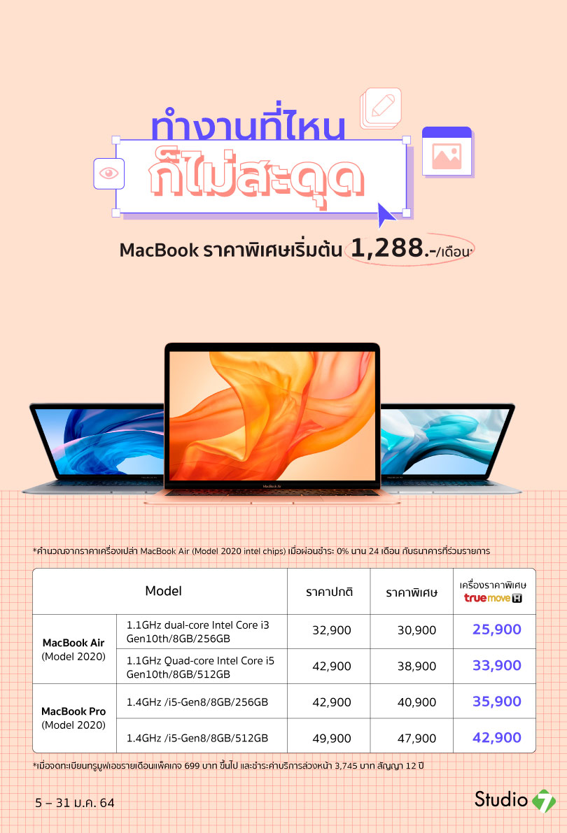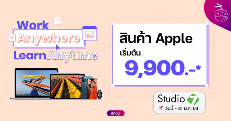 Work Anywhere Learn Anytime สินค้า Apple เริ่มต้น 9,990 บาท* ที่ Studio 7 วันนี้ – 31 ม.ค. 64